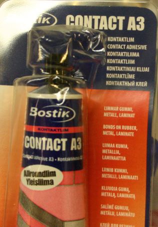 Itse käytin tuubissa olevaa Bostik Contact A3 liimaa: