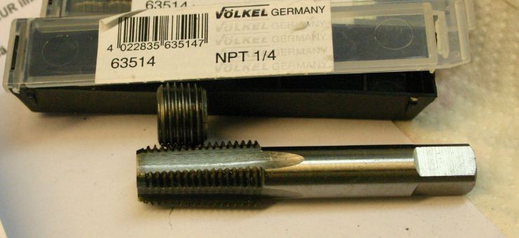 Lisäksi itse reikä on hieman liian iso NPT-kierteelle. Reikähän on ½ tuumaa ja NPT-kierteelle pitäisi reiän olla 7/16 = 0.438 tuumaa. tuo ei kuitenkaan haittaa lopputuloksen kannalta.