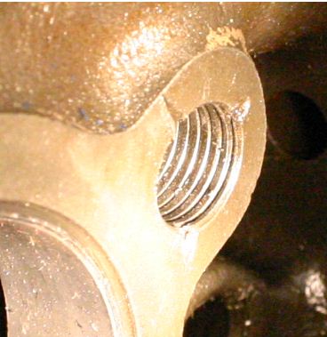 Kierteytyksen jälkeen huolehdittava epätasaisuudet reiän reunoista pois (itse pyysin koneistamoa hoonaamaan kevyesti nuo venttiilinnostajien reiät läpi).