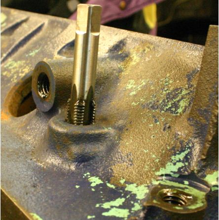 Tuossa lohkon kierteytyksessä tulee hirmu paljon metallisilppua öljykanaviin ja ainakaan itse en olisi tuota ruvennut tekemään, ellei lohko olisi muutenkin ollut menossa moottorikoneistamolle hoonattavaksi ja tasojen oikaisuun. Tilasin samalla lohkon pesun ja käyn vielä koneistamolta tulon jälkeen harjasetillä kanavat läpi. Kierretapin voitelussa kannattaa käyttää todella reilusti leikkuuöljyä ja käyttää tappia riittävän usein ulkona puhdistettavana lastuista + kokeilla tulppaa mihin syvyyteen uppoaa. Tuota kierteytystä ei voi oikein lohkoon harjoitella, vaan homma on onnistuttava kerralla.
