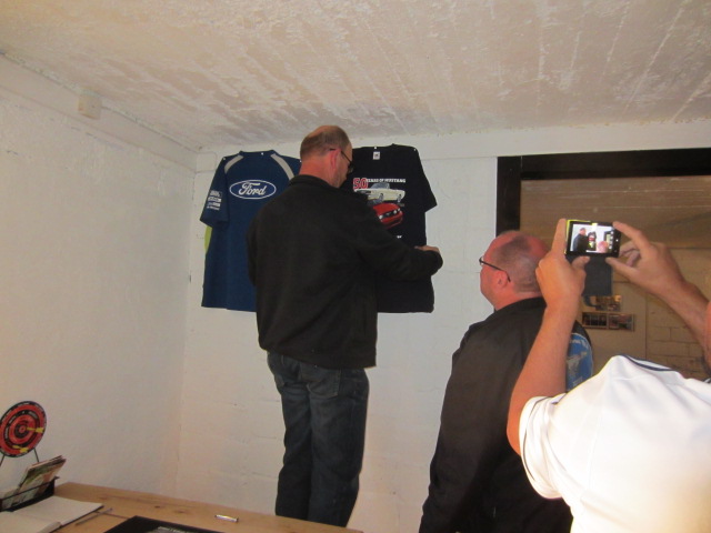 Mustang 50 Juhla vuoden kunniaksi saimme kunniapaikan Pub paalupaikan seinustalta, jonne luovutimme 50-vuotis juhla t-paidan näkysille.