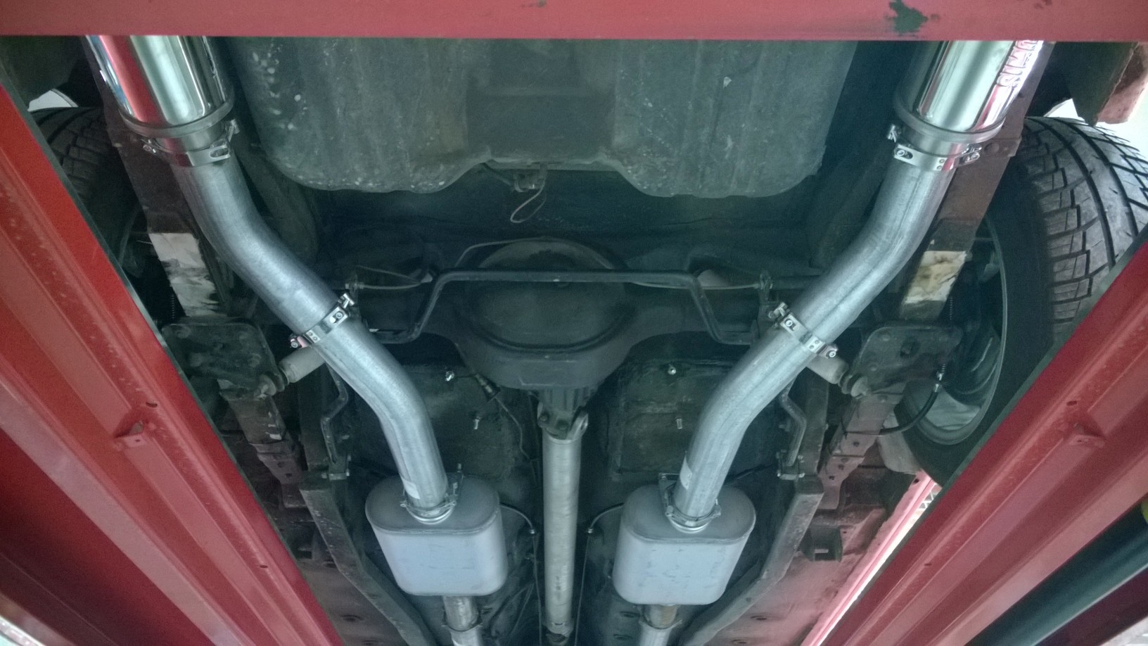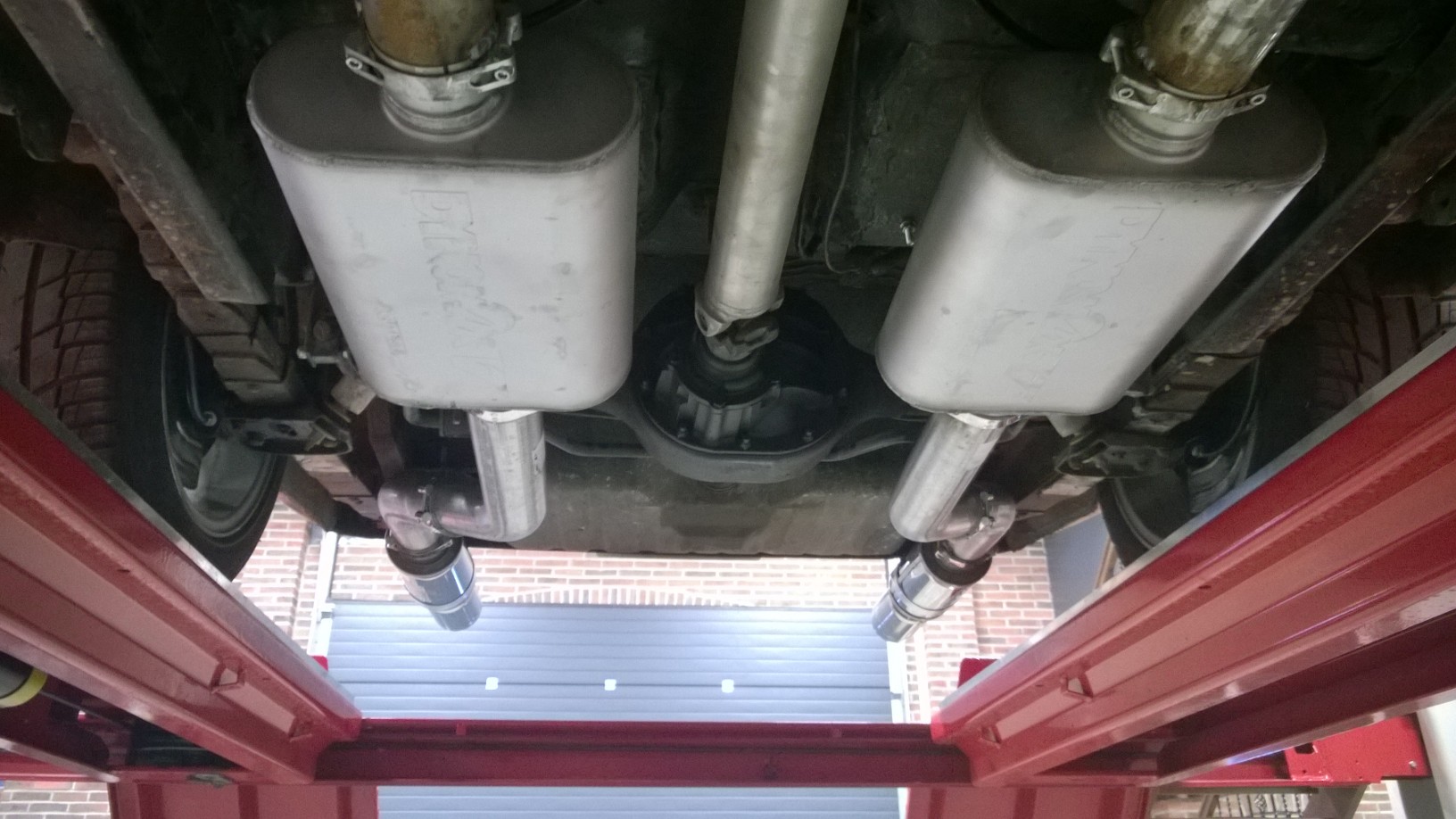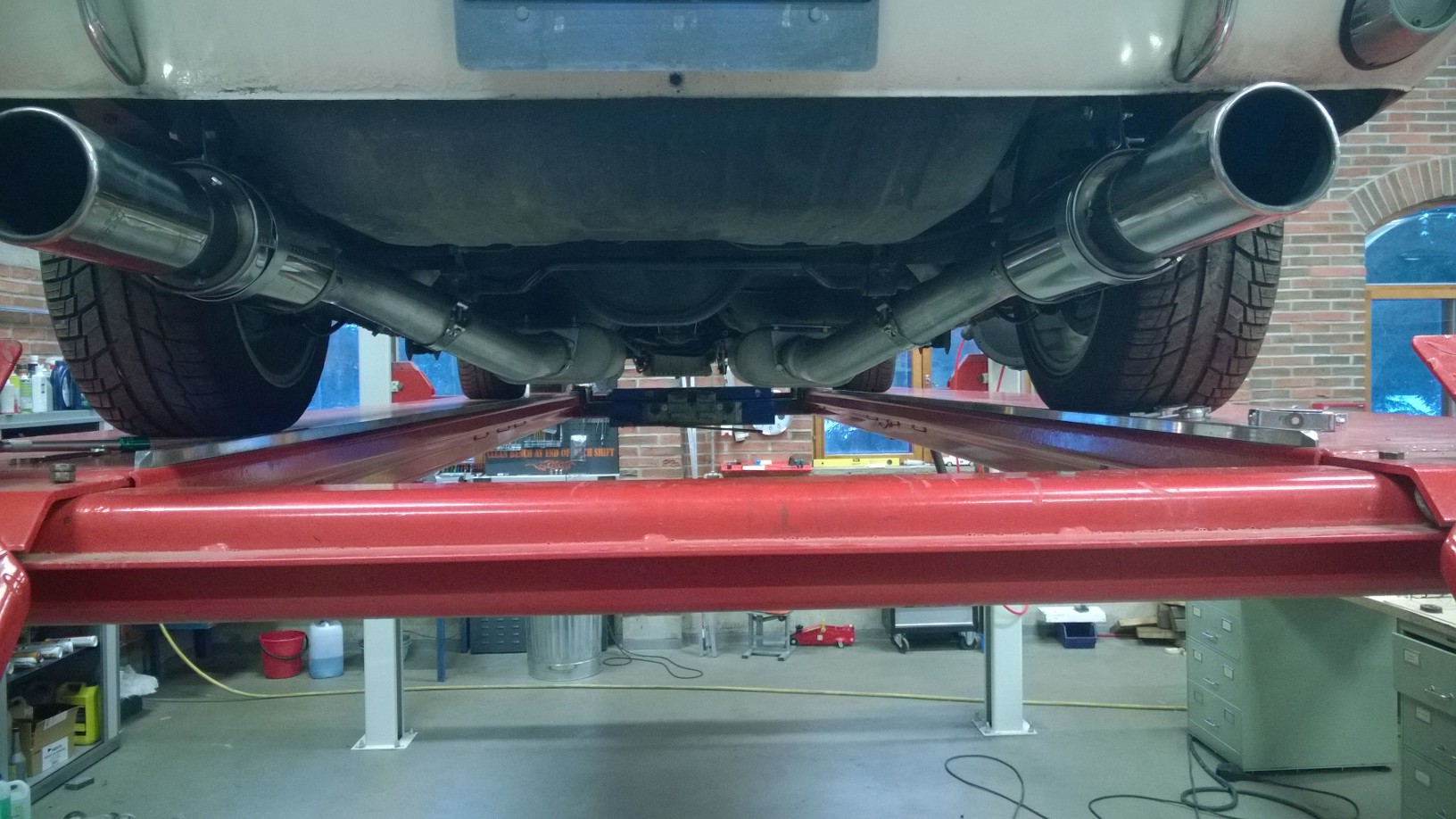 Taka-akselin ylitys tehdään siinä tilassa mitä on käytettävissä ja jos tilaa ei ole niin sitten alta tai sivusta ulos. Hienoin viritys mitä olen nähnyt oli 4 kpl 3" alituksia Ojalan Jarin rakentamassa '65 bloweri ht:ssa. Mun tanarissa on 89mm eli 3 1/2" putkisto alusta loppuun asti ja tuossa on tehty taka-akselin ylityksen ilman litistyksiä tms. kikkoja ja autoahan on madallettu 2" takapäästä. Tuossa kikka on ei kikkoja, toisaalta tilaa kun oli niin mikäs siinä. Tukirangallinen taka-akseli toi tukirangan lähelle ylitystä, joten pientä putkijumppaa on täälläkin tiedossa. Läpirvirtaus Dynomaxit 3 1/2" odottavat jonkun intoa.