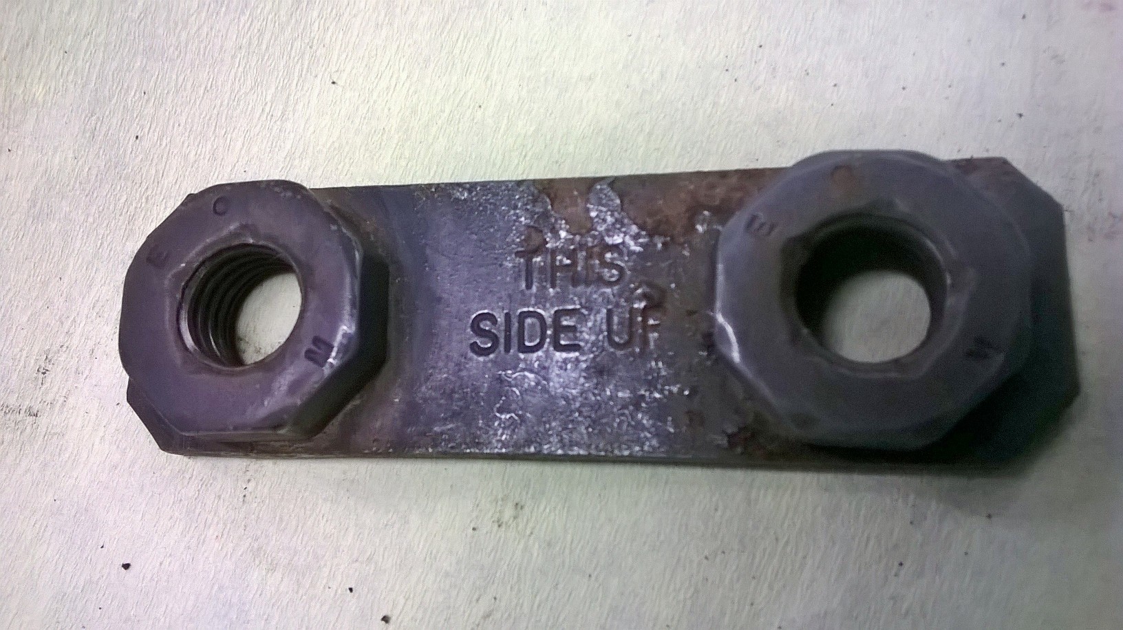Kaikenlaisia hauskoja huomioita välillä tekee. Fordin 80-luvun laatukampanja "Quality is job nr. 1" tosissaan yritti ottaen huomioon myös linjan heikoimmat lenkit. Tämä on apurungon taaempien kiinnityspulttien vastakapple johoin on painettu "this side up". Ettei siltä kokoonpano-Joelta vahingossakaan lipsahda kriitttinen kiinnike väärinpäin :lol: