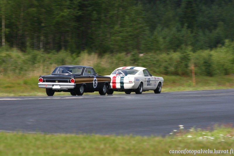 Molemmista sai hienoa kulmaa miten aitoa -65 GT 350R Mustia viedään radalla.