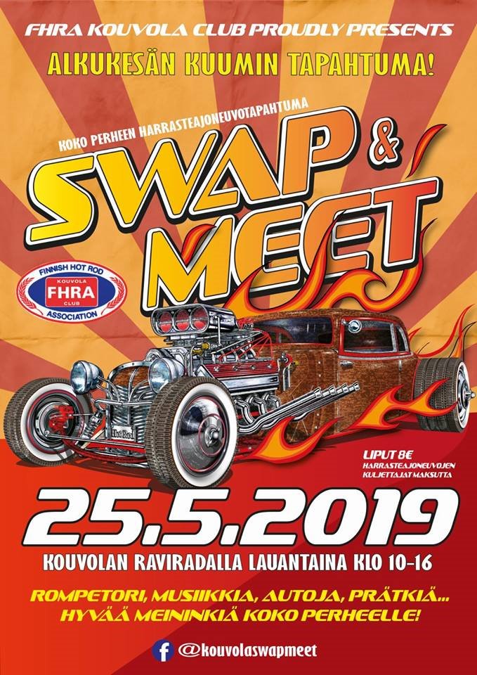 Kouvolan raviradalla lauantaina 25.5.2019 Swap Meet. Järjestäjän kanssa sovittu Mustangeille oma alue viime vuoden tapaan. Alustavasti 20 autolle varattu alue, laajennetaan sitten jos hevosia näyttää kirmaavan tänne enemmän.