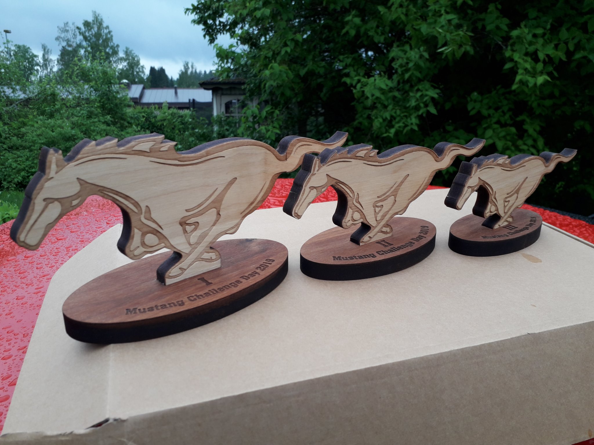 Onnittelut vielä Mustang Challenge Day voittajalle! Palkinnot jäi jakamatta paikanpäällä, mutta jossain vaiheessa nämä kyllä luovutetaan kolmelle parhaalle ( mahdollisesti syyskokouksessa ? ). Kiitos myös kaikille osallistujille. Teitte hienon tapahtuman! Haluan myös kiittää palkintojen tekijää, eli Veico Oy. He tekivät palkinnot todella edullisesti "sponssina" tapahtumalle. https://www.veico.fi/