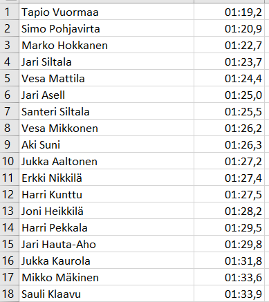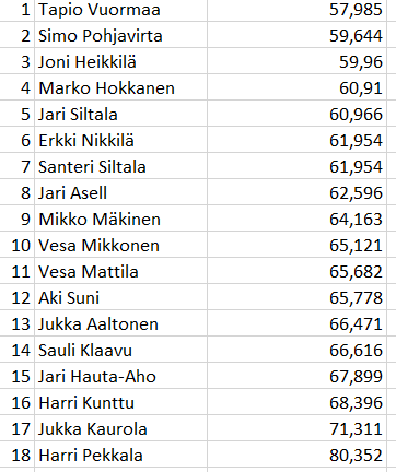 Kyllä on Simpan muutokset olleet onnistuneita! Slalomissa huimat 0,031 sekunnin jäljet selkään. Täällä kuski oli tosin vielä soramoodissa... :roll: