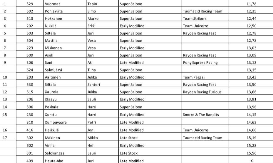 Jälleen tulosten pisteytykset vaativat hieman korjausta. Saatiin yksi kaikkiin kolmeen kilpailuun osallistunut kuljettaja vielä listoille. Sijoituksissa ei juuri muutoksia.