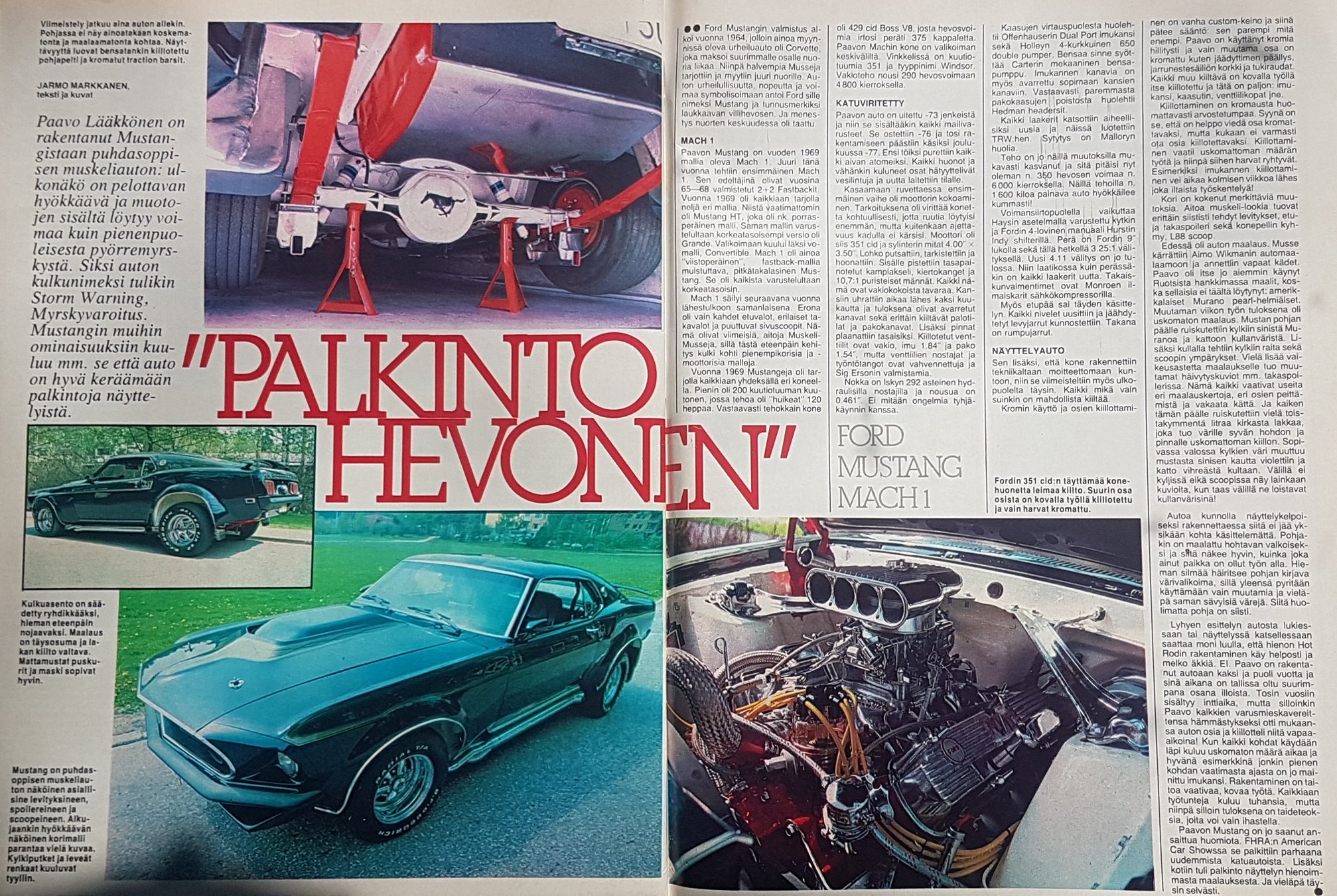 Nurkkia siivotessa tuli vastaan Vauhdin Maailma numero 7/1980. Siinä on esitetty Storm Warningiksi nimetty -69 Mach 1, josta on sen ajan hengen mukaisesti tehty melkoinen hottentotti. Sen verran rupesi kiinnostamaan, että ajattelin kysellä olisiko tuon myöhemmistä vaiheista mitään hajua?