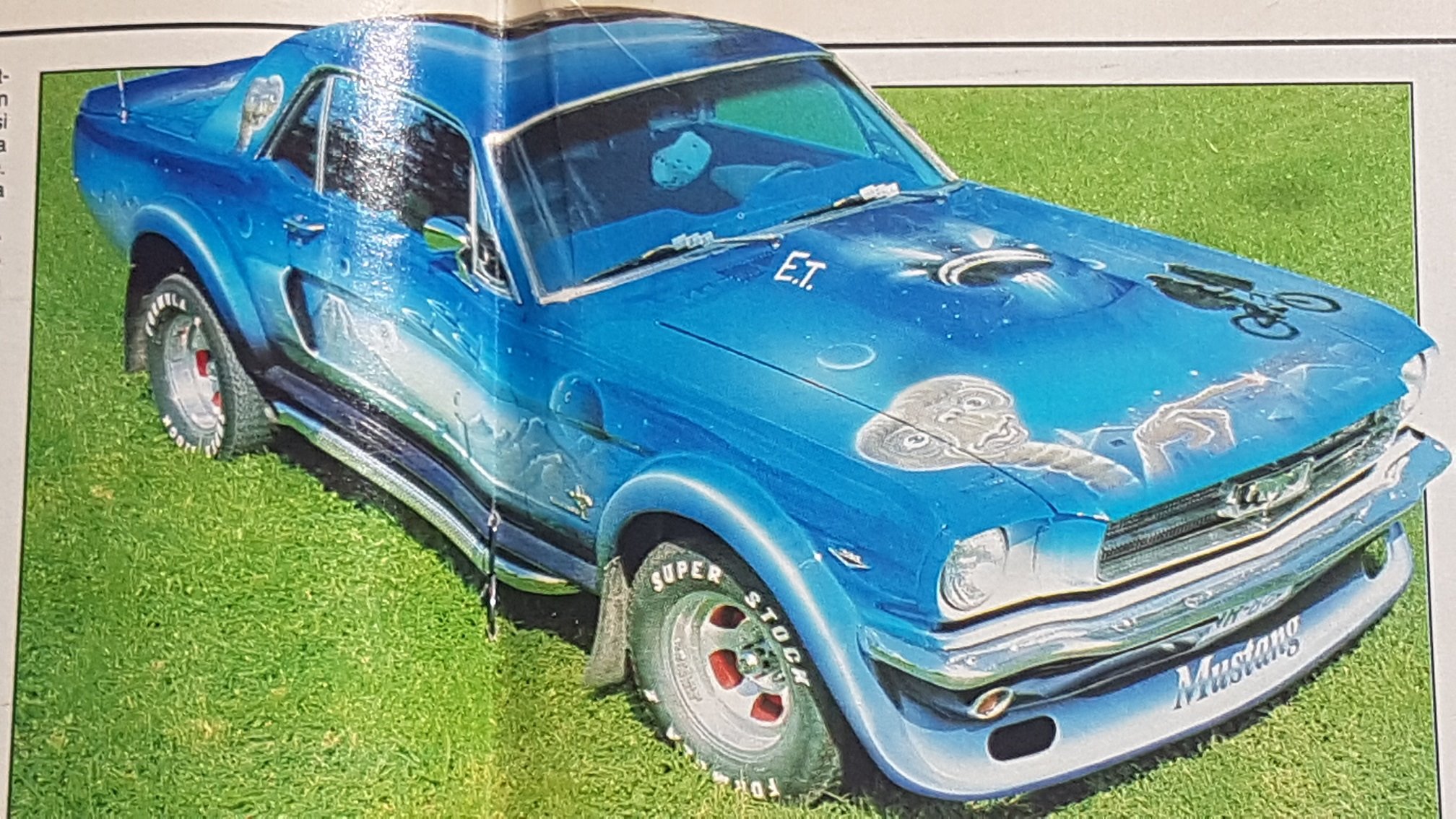 Entäs tämä Simo Riikosen maalaama E.T.-Mustang Vauhdin Maailmassa 8/1983?