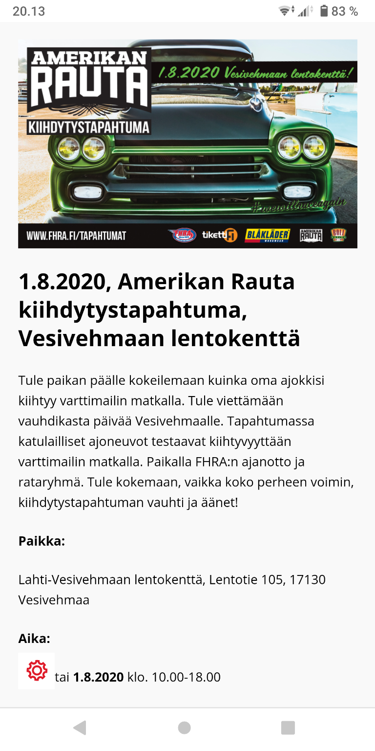 8.8lauantaina.Ph.Mustangeja lähtee Nastolan ABC.tä.klo.9.30.Ei ilmoittautumisia.