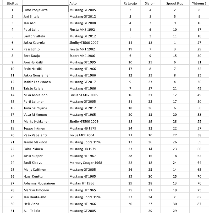 Tällä kertaa en päässyt paikalle, ja kun ei kaikki nimet ole tuttuja, niin olisi mukava kun auto olisi myös mainittu tuloksissa. Ainakin itseäni kiinnostaa koska pihasta löytyy myös eurofoortteja.