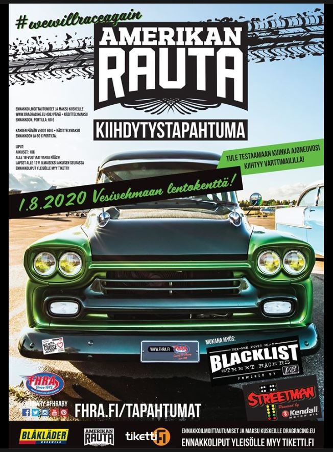 ehkäpä 1.8.2020, Amerikan Rauta kiihdytystapahtuma, Lahti-Vesivehmaan lentokenttä nähdään.