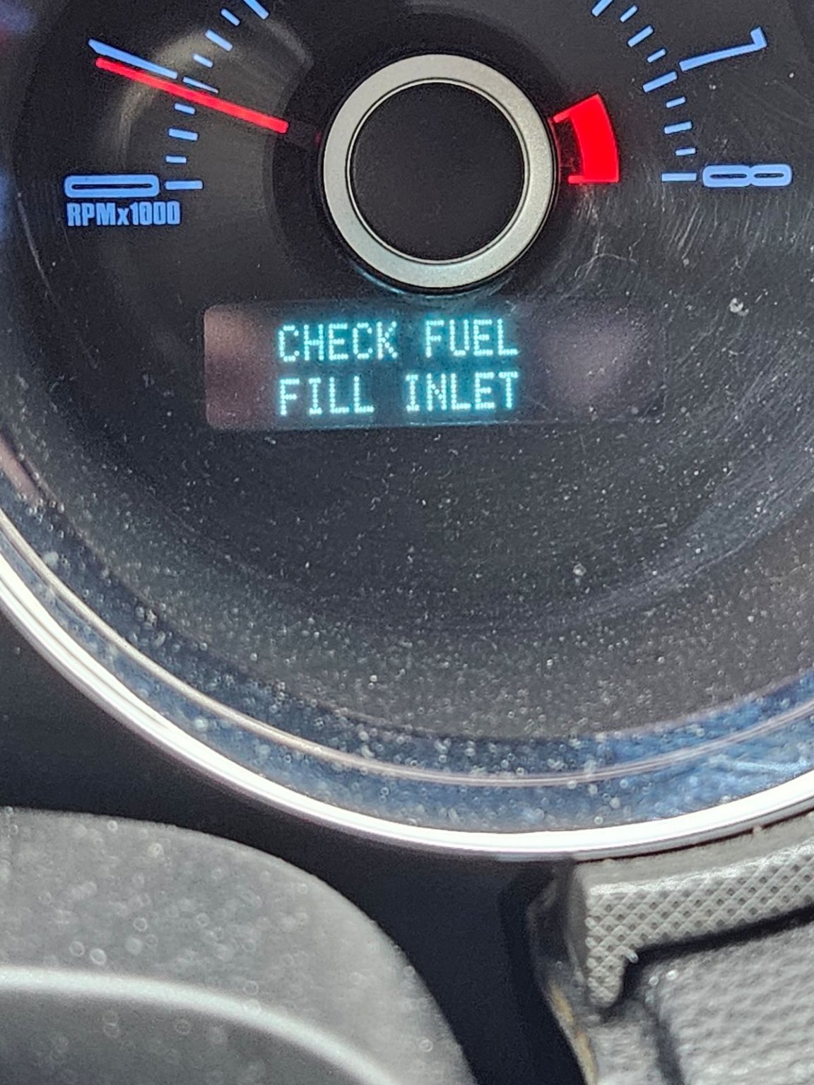Tiistaina syttyi uutena juttuna Check Fuel Fill Inlet.