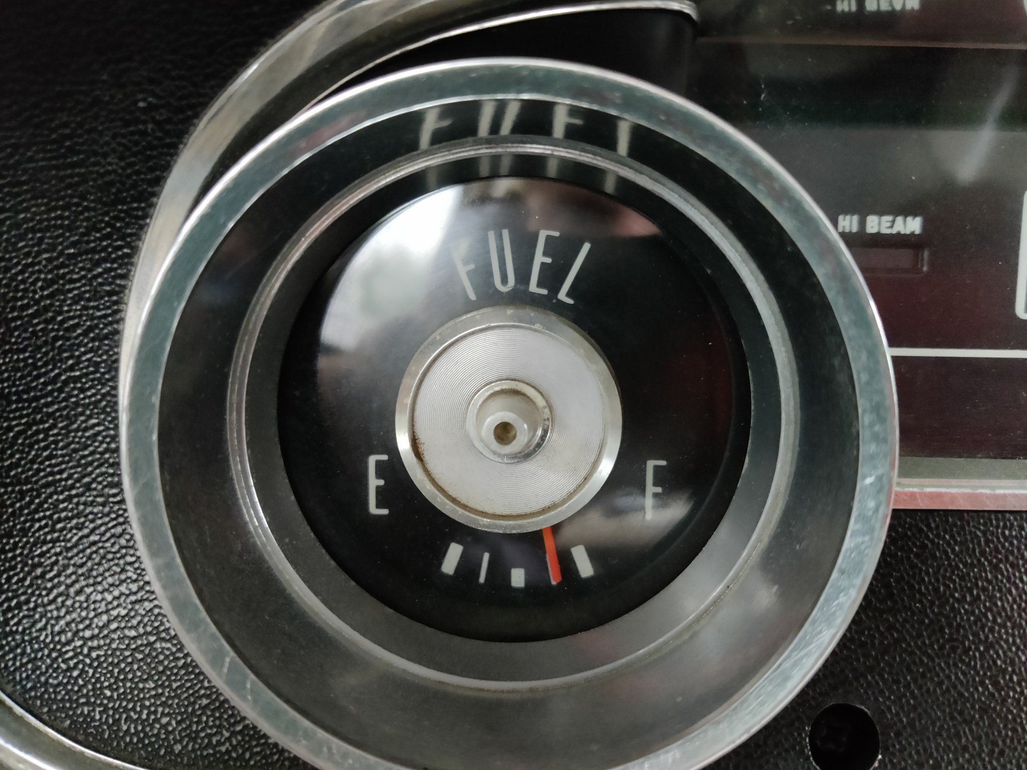 Kun tankki on ihan täynnä, näyttää mittari vähän yli maksimin. Kun viisari on ¾:n kohdalla, mahtuu tankkiin 10 - 13 litraa. Viisarin näyttäessä puolta tankkia mahtuu sinne noin 20 litraa. ¼:n kohdalla bensaa menee 30 litraa, ja ⅛:n kohdalla 35 l noin likiman. Tuon pidemmälle en ole kertaakaan uskaltanut mennä, pikkuisen varovainen kun olen.