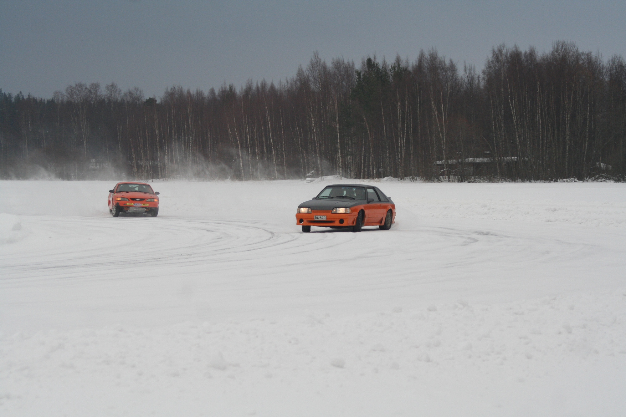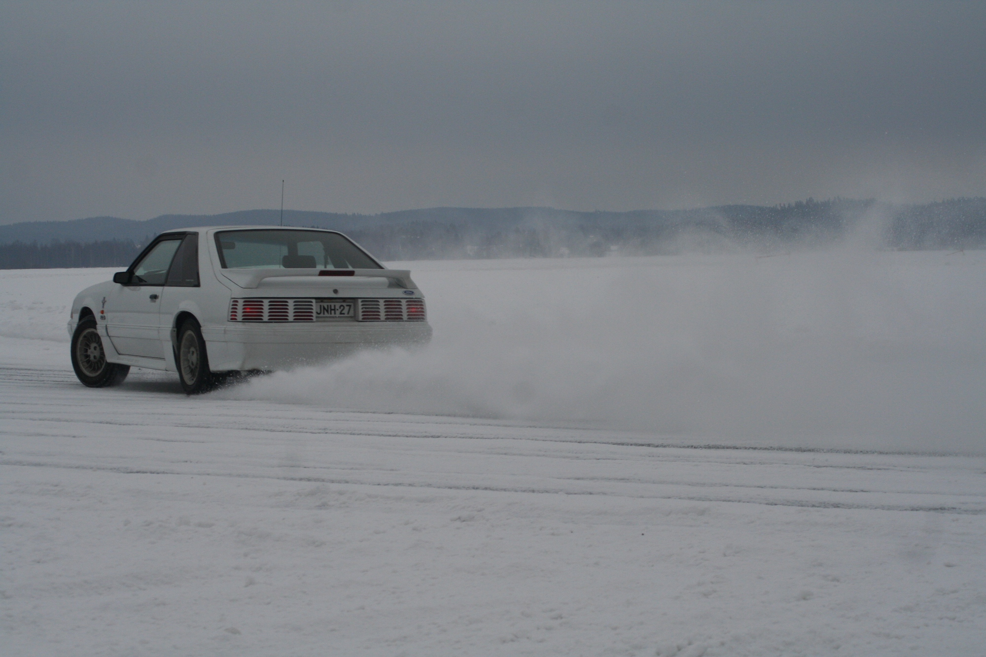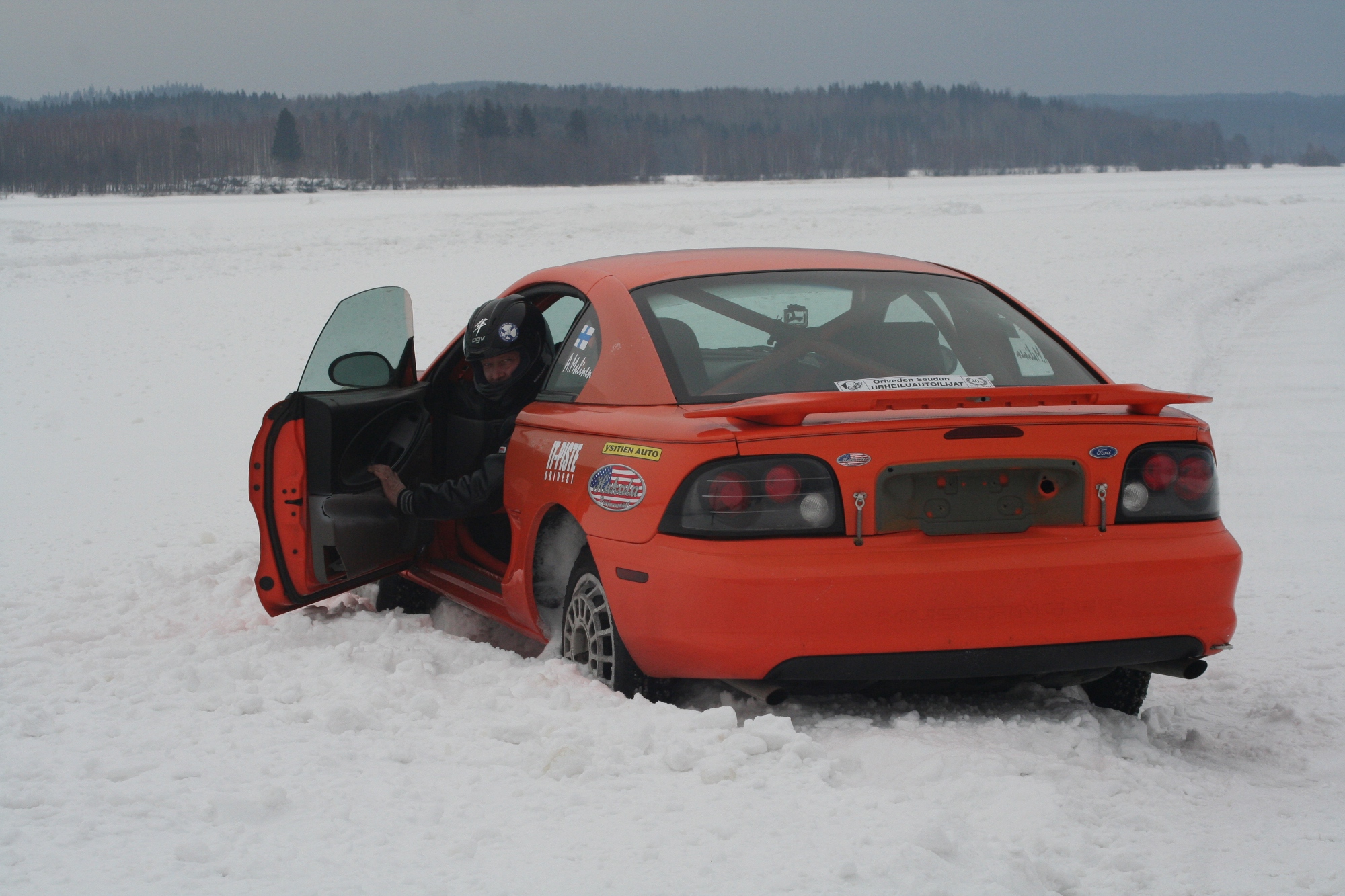 Upea päivä jota ei ihan pian unohda, kun pääsi ralli-mustangia itse kurmuuttamaan. Kerran se "vähän" lipesi syvälle hankeen, mutta vauriot onneksi vain henkiselle puolelle. :D