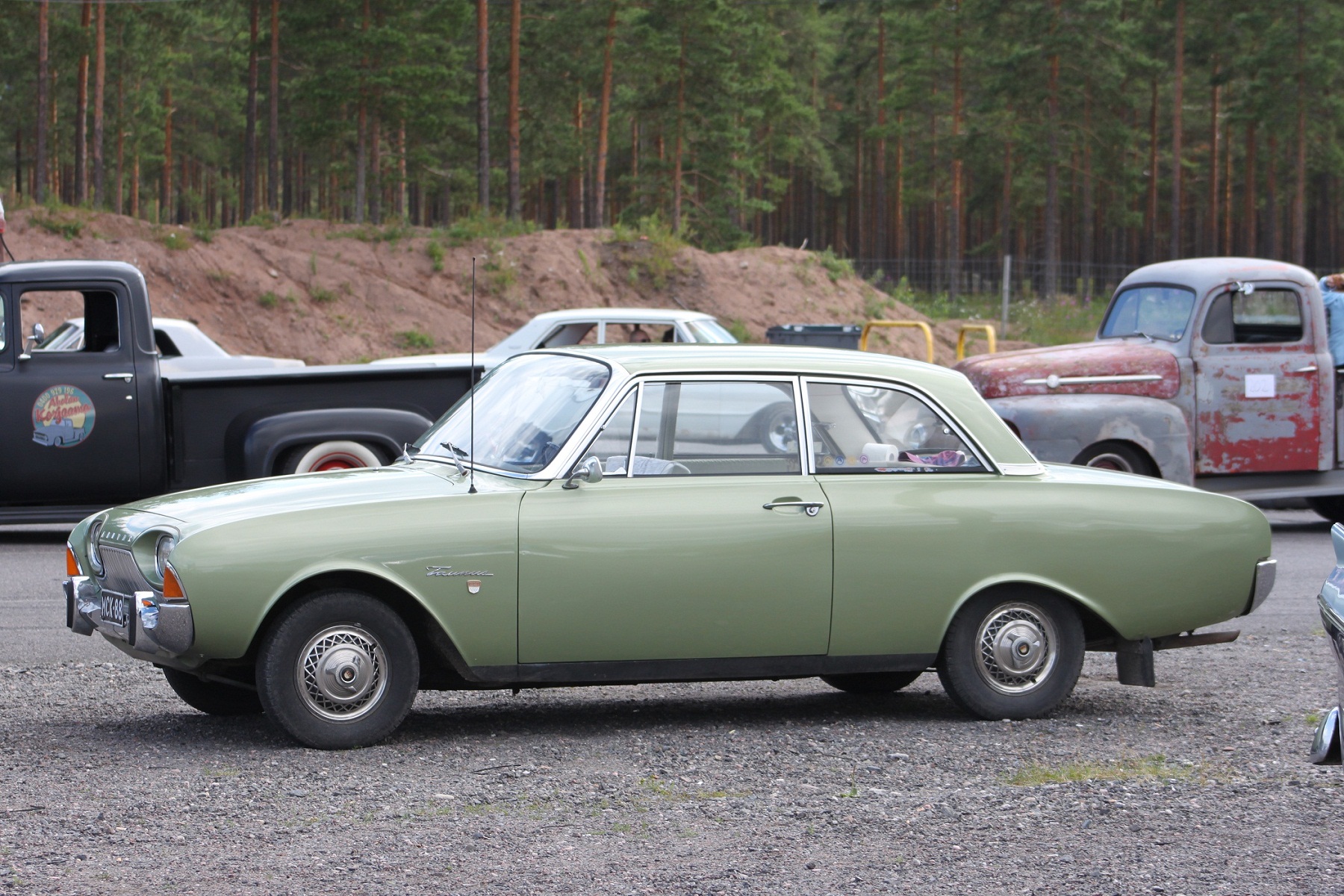 Meidän cateringin -64 Taunus oli hienosti itseni ja tuon välissä, ja autothan ovat kuin kaksi marjaa. Toisesta vaan on unohtunut puolen metrin kaistale keskeltä tehtaalle.