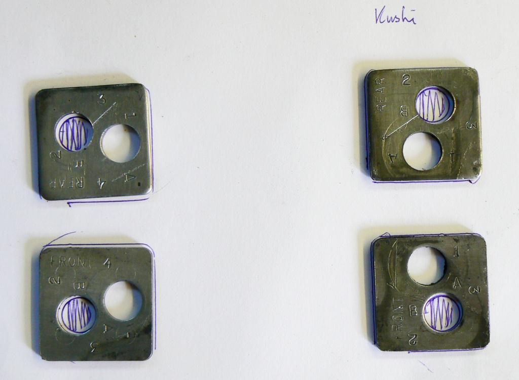 Periaatteessa tuosta ei tarvitse malli kuvaa jos kyseessä on 67 -> 73 mustang joissa on valmiina camber säätö alatukivarressa. Tekee noita levyjä joko niin, että on useita joissa reiän paikka esim siirtyy 0,5 mm kerrallaan sivusuunnassa tai taiteilee palan niin, että siinä on useampia reikiä jotka siirtävät alatukivartta haluttuun suuntaan tuon 0,5 mm kerrallaan.