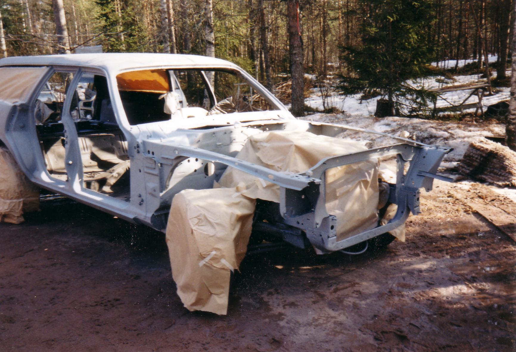 Kyllä sitä laivamaalia saa, mutta ei 5l erissä pitää tilata tynnöreissä 200l. Ei vaan taida monellakaan autoharrastelijalla olla paalua riittävästi takataskussa. Lähes vastaavia maaleja käytetään kaivoskoneiden maalauksessa, minullakin on noita maaleja hankittuna omaan käyttöön. Tuosta alustan völjäyksestä viellä vähäsen, omaan koslani pohjan putsasin entisistä massoista käsipelissä, oli perkeleen työläs operaatio. Mutta pohjan kunto oli senverran hyvä että päädyin ruiskuttamaan koko alustan 3 kertaan tektyylin massalla, 10kg sitä meni noin 5mm kalvopaksuus. Koteloihin ympäriämpäri 4l kannu tektyylin ml puhtaalla moottoriöljyllä terästettynä, tukkesin kaikki koteloiden reijät muutaman päivän päästä laskin ylimääräiset litkut astioihin. 98 vuodesta lähtien on ajettu keli kuin keli, parina syksynä suolalitkun seassakin eipä ole ruostetta ilmestynyt sentään 15 vuosi jo menossa, eikä säkähdä sorateitä.