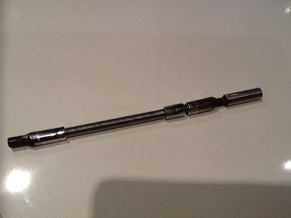 Akseli paikalleen ja siihen sopiva hylsy, jatko ja akkuporakone. Hylsy kiinni jatkoon, ettei tarvi hakea öljypohjasta...
