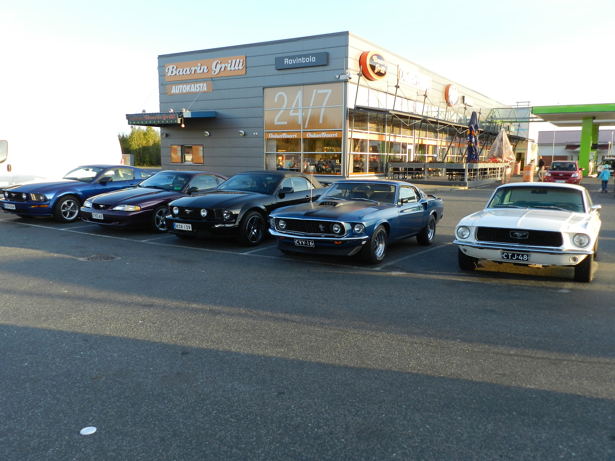 Ajokauden päättävä cruising ajettiin Oulujoen maisemissa, Muhoksella käännyttiin takaisin kohti Oulua ja kahvia juotiin. On se vaan hienoa vetää tuollaista letkaa kun taustapeilissä näkyy toinen toistaan hienompia Mustangeja tien täydeltä