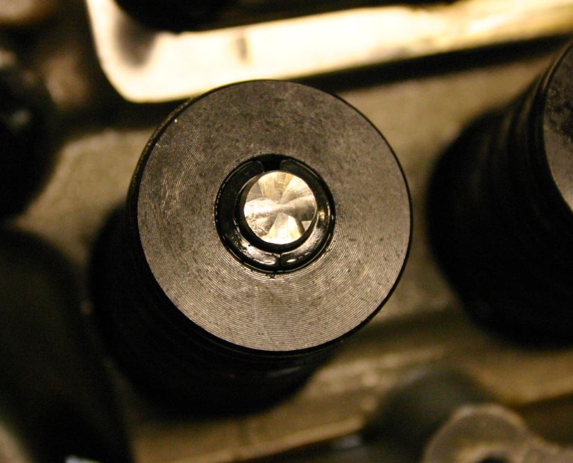 Venttiilin lukot ovat muokanneet tuota reunaa ja kun venttiilit veti pois, niin kaikki venttiilinvarret kalvoivat hieman venttiiliohjurista ainesta mukana nuolen osoittamaan kohtaan. Olisiko tuota terävää reunaa kannattanut hieman hioa esim. Dremelillä ennen venttiilin irroitusta?