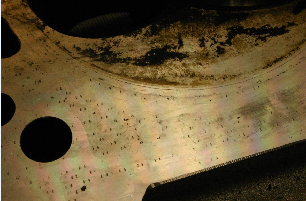 Ei ollut vuotoja eikä palamiseen viittaavaa. Pinta näyttää siistiltä lukuunottamatta noita pistemäisiä jälkiä.