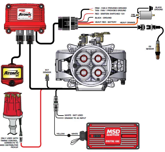 Virranjakaja ilmoittaa Atomic ECU:lle milloin ollaan kampiakselin nollakohdassa ja ECU liipaisee sitten kipinän maattamalla keltaisen johdon.