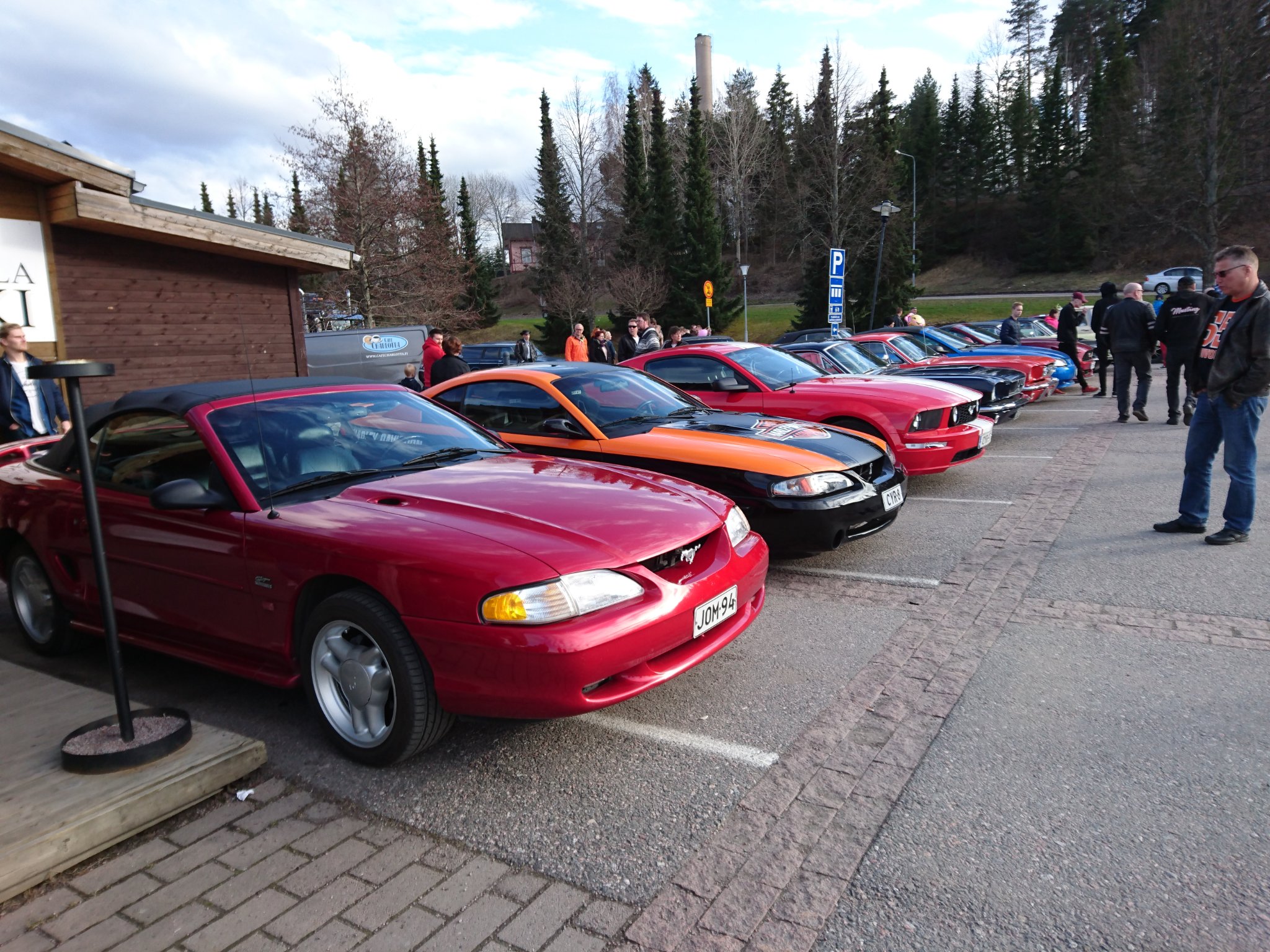 Kuvaa kun tarkkaa katsoo hesalaiset on tullut Mustangeilla tapahtumaanne.