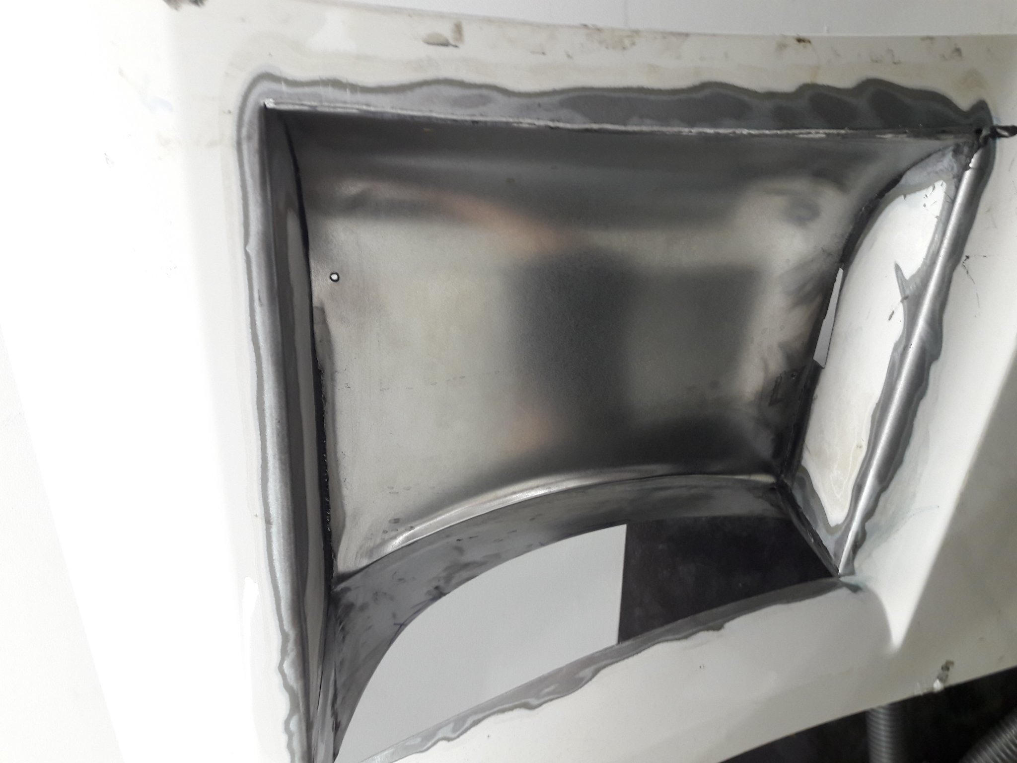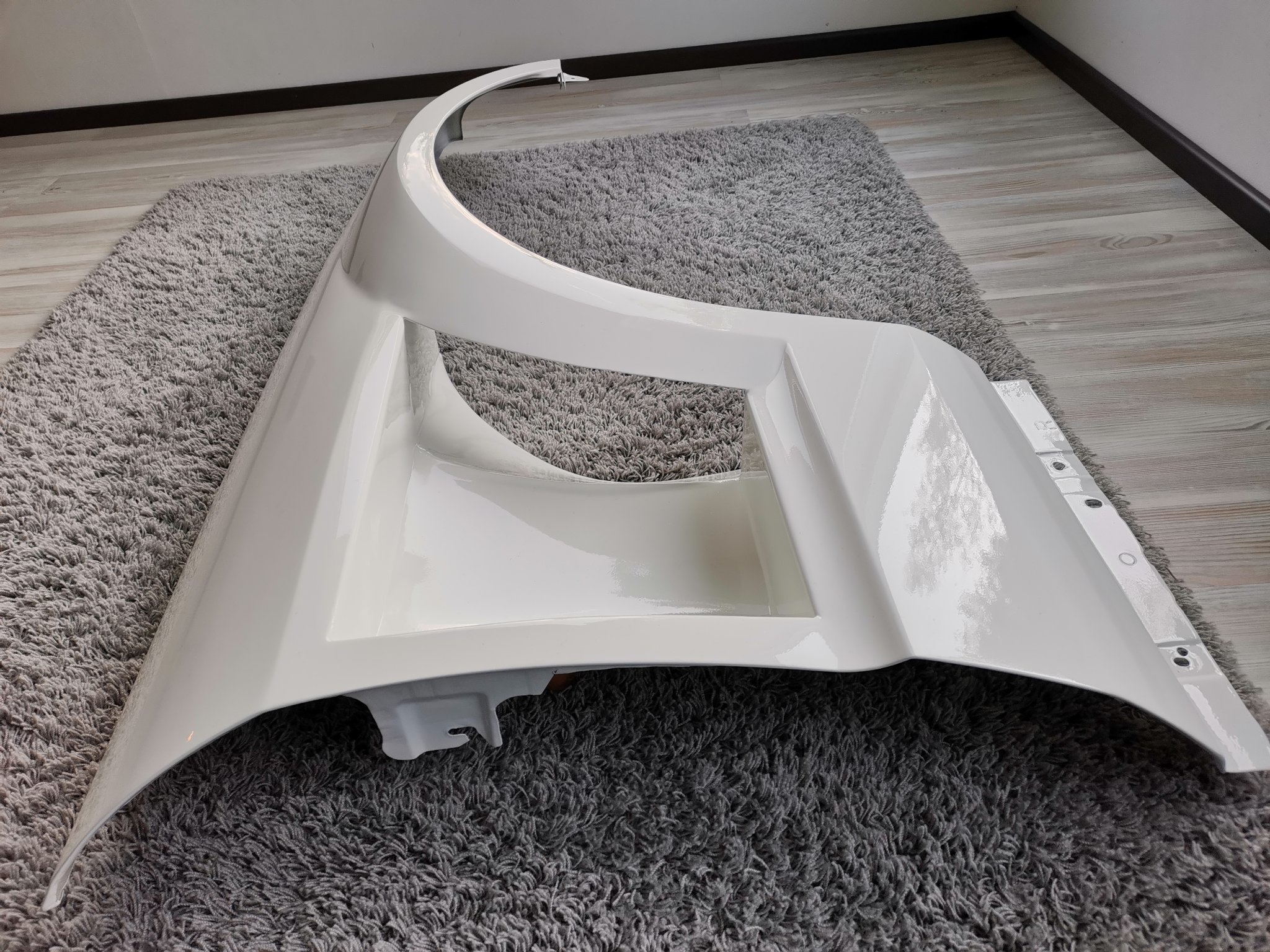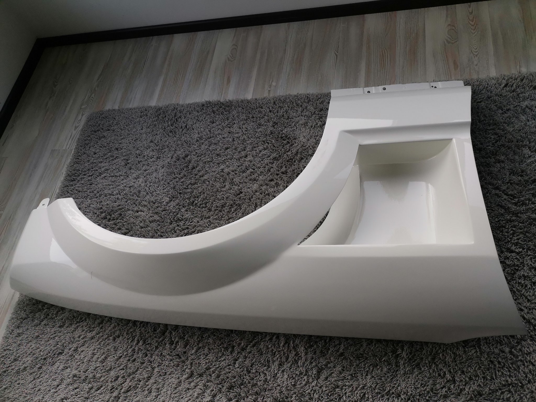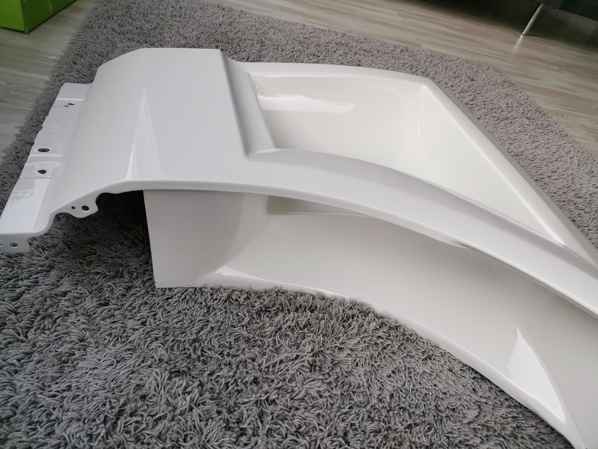 Homma eteni lähes maaliin! Osat kävi maalarilla ja tässä vaiheessa vielä ennen asennusta näyttää hyvältä. Aukon etureunaan tulee vielä kaarevaksi muotoiltu hiilikuituinen insertti joka viimeistelee tuon teräväksi ja herkästi ruostuvaksi jäävän osan. Mutta seuraavaksi osat autoon paikalleen ja sitten jatkamaan. RTS-verkkoa pienellä silmäkoolla tulee vielä siihen pintaan jossa lokari ennen kulki blokkaamaan kaiken hiekan ja kuran osumisen maalipintaan. Mahdollisesti katuajoon leikkailen vielä läpän blokkaamaan kokonaan ilmavirran ja kuran lentämisen aukkoon.