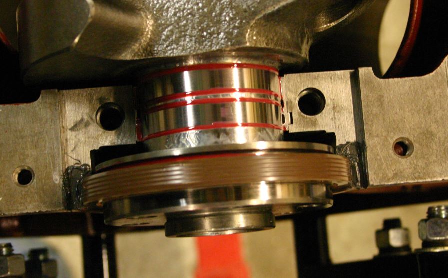 Kampiakselin takapään stefan ja lohkon välinen tiiveys varmistettu silikonihunnulla.