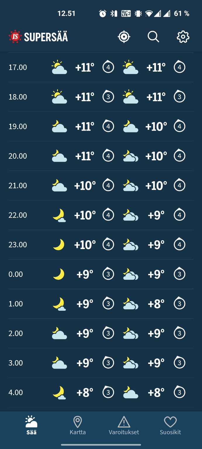 Edit: kun tarpeeksi etsii, löytyy sellainenkin säätiedote, joka lupaa siedettävää säätä. :D