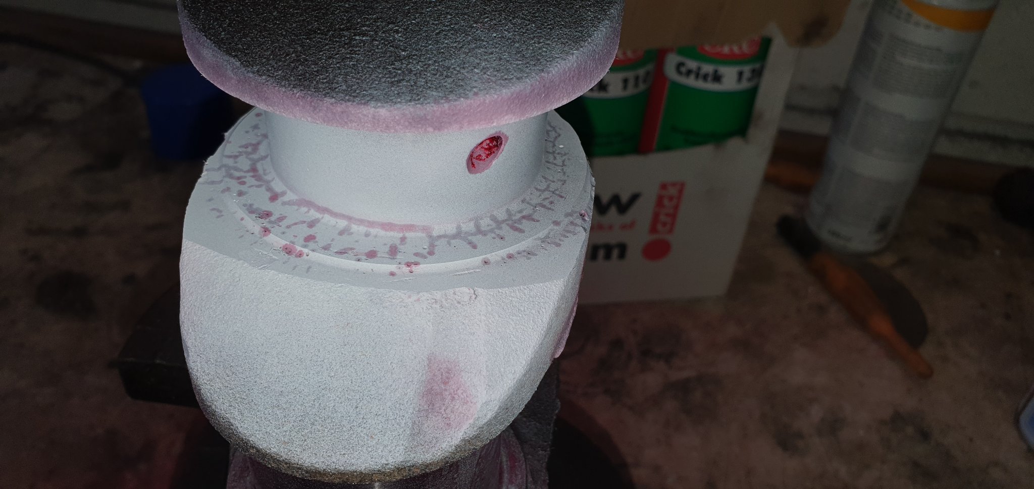Lohkoa tuli putsattua vielä lisää, sitten nokan perusteellinen rasvaus redlinen assembly lubella (on varmaan liikaakin, mutta tuo pitäisi liueta öljyn mukaan) ja asennus, öljy- ja jäähdytyskanavien proput. Kampuran yhdessä laakerissa oli pieni kolhu heti paketista otettaessa, haitanneeko tuo?