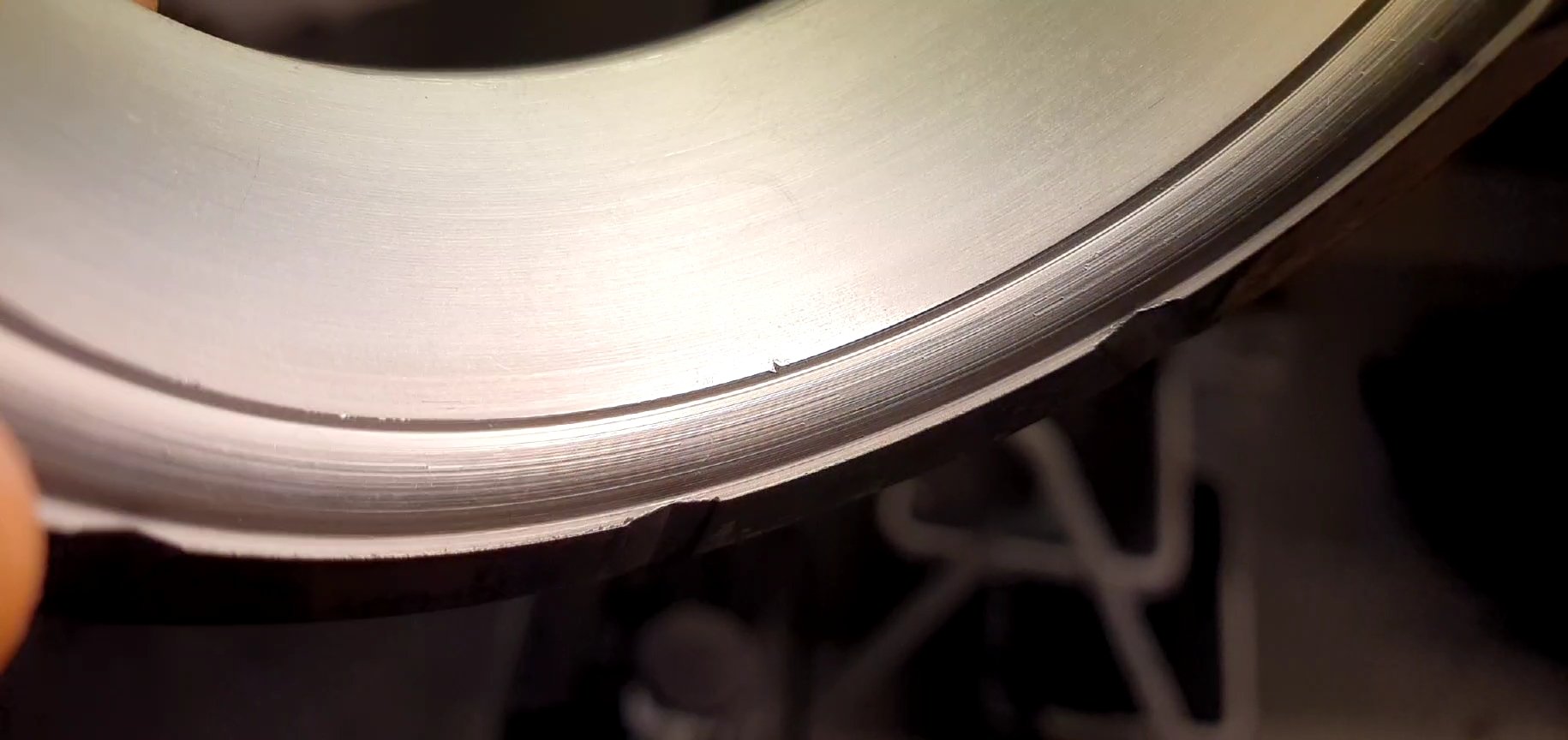 Tavaroita hakiessa sanoi akselin olevan hyvässä kunnossa, mutta totesi sittemmin, ettei ollut noita kaulojen reunoja kovin tarkkaan katsonut. Taskulampun valossa tuon särön itse ainakin vasta huomasin.