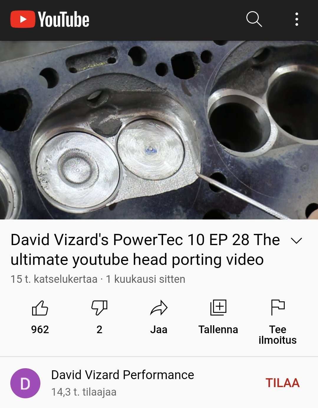 Eikös wizardin opeissa ollut myös sellainen juttu että pakoventtiilin lautasen alakulmat kannattaa pyöristää, virtaa kaasut paremmin lautasen pinnalta pois.