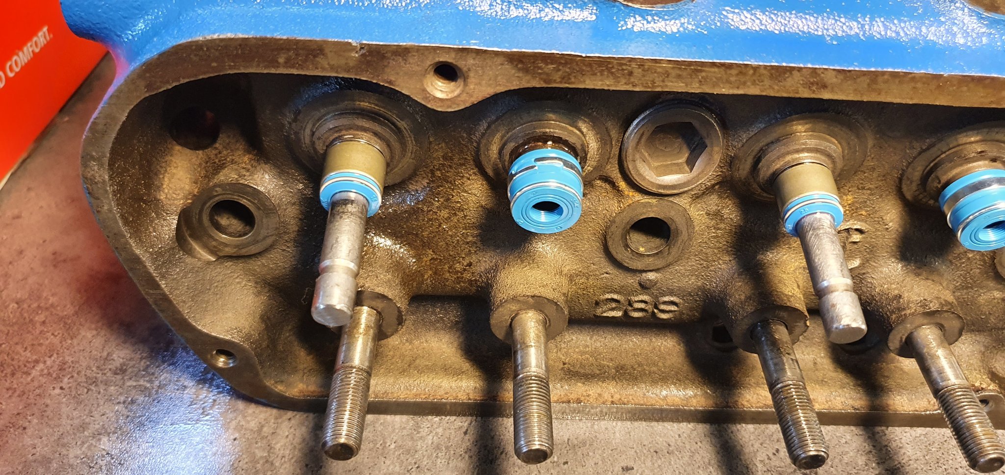 Tämmöset venttiilin varren tiivisteet sinne lopuksi tuli. Imuventtiilin ohjurit on joskus koneistettu, joten niihin tuli metallirunkoiset comp 518-16. Pakoventtiilien ohjurit oli koskemattomat, joten meinasin niihin aluksi sateenvarjoja. Löysin kuitenkin niihin soveltuvat kumirunkoiset kiinteät tiivisteet, malli on enginetech s305v. Tuntui istuvan napakasti ohjaimeen.