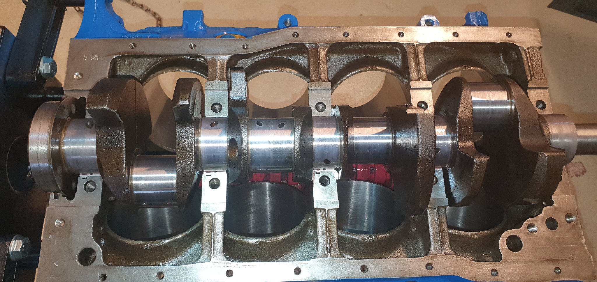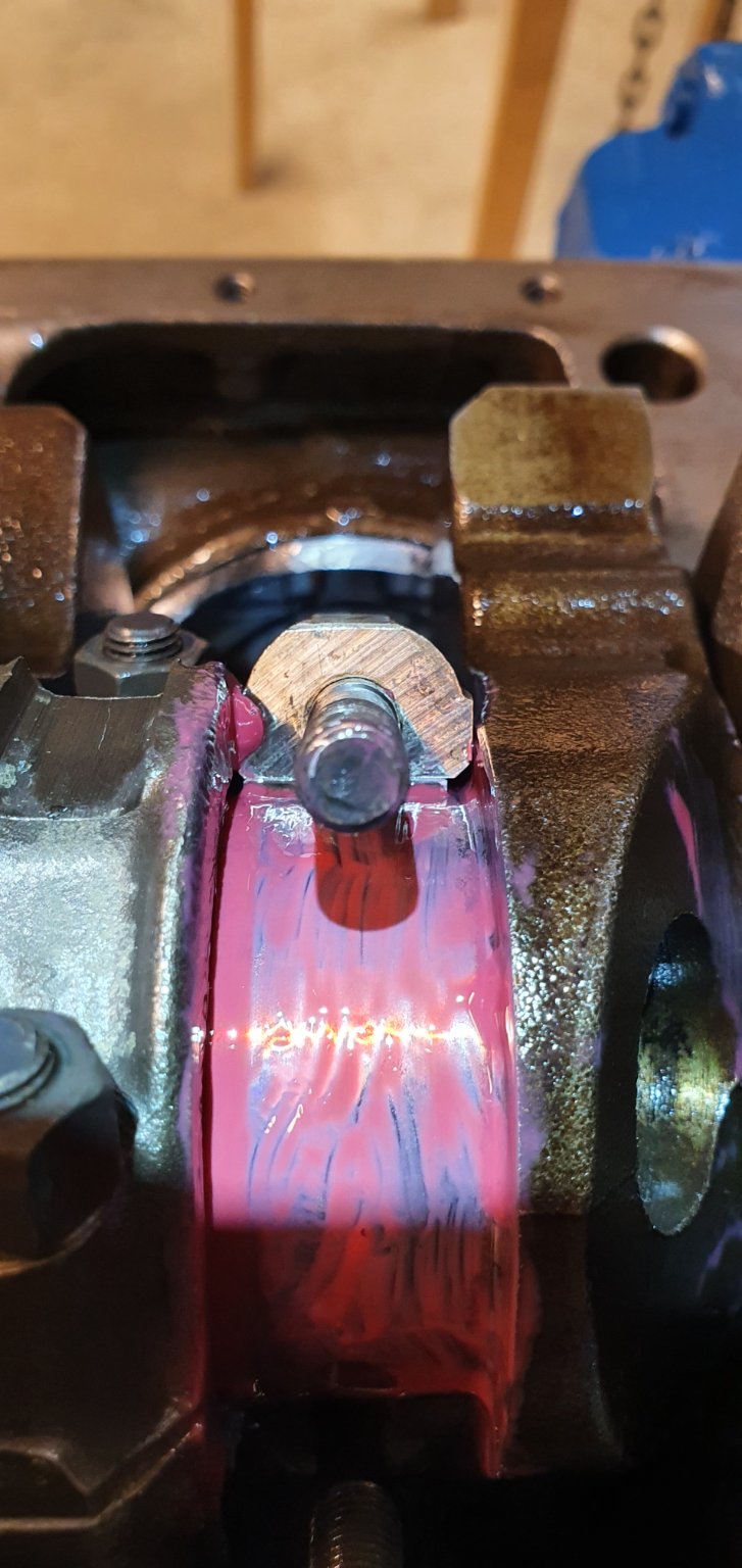 Sain Jyriltä uuden varaosa-kampiakselin, jolle tein vielä kevyen kiillotuksen ja putsailut, ja irrotin siitä ohjainlaakerin. Runkolaakerivälykset on 0.002-0.003". Akseli meni paikalleen reilusti redlinen assembly lubella rasvattuna.