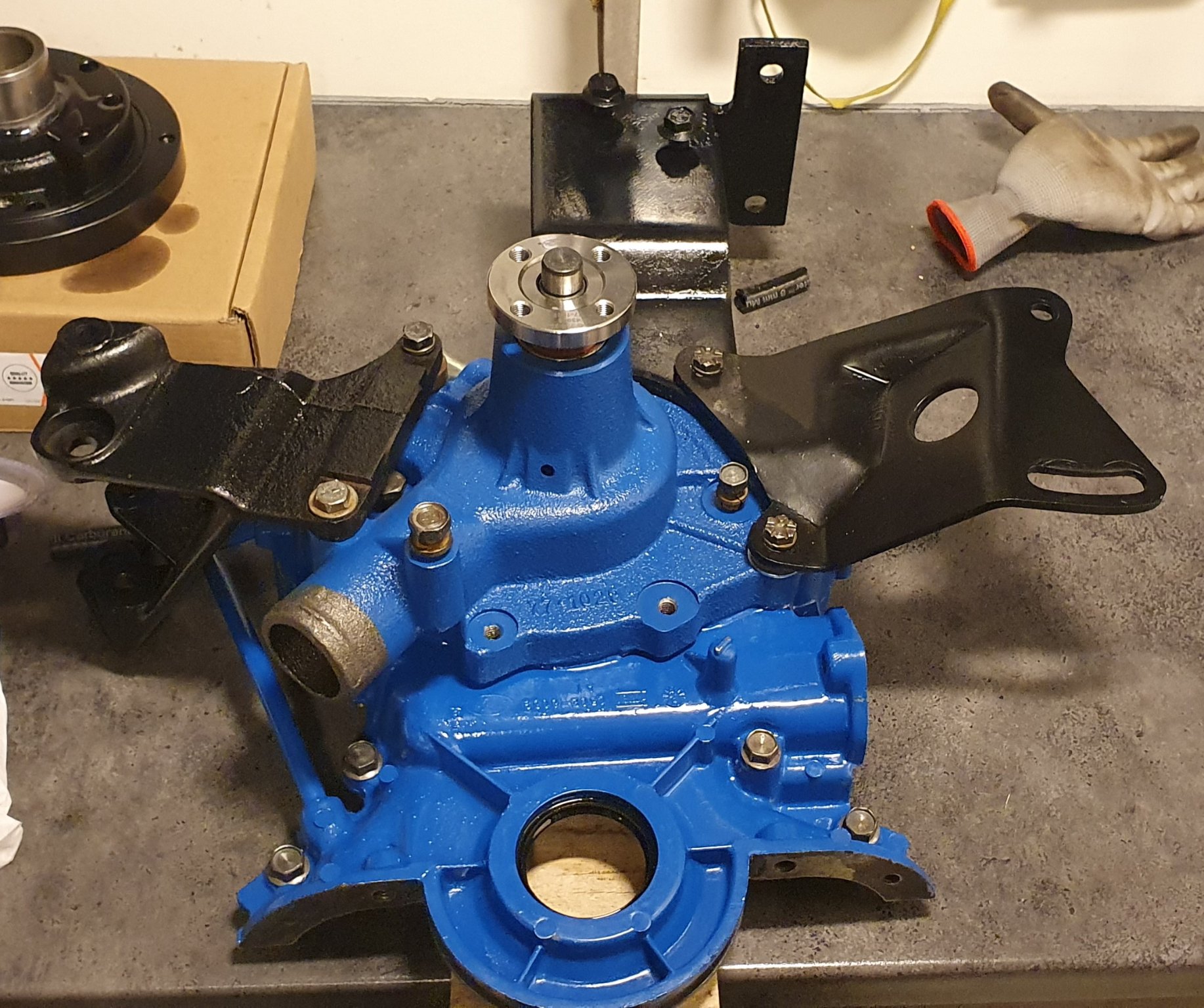Jakopääkopan, vesipumpun ja apulaitekannakkeiden pulttien ja shimmilevyjen paikkoja sai hetken pähkäillä, onneksi olin ottanut kuvia purkuvaiheessa.