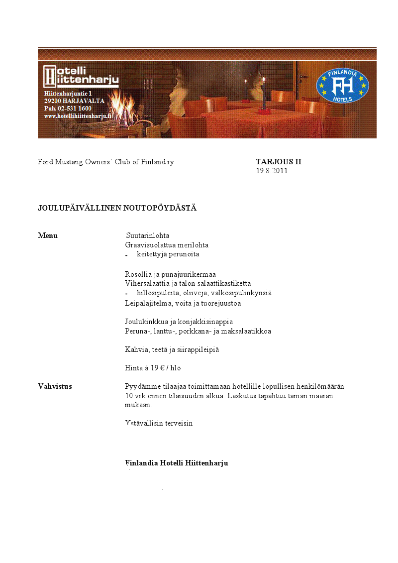 Varaukset 02 5311600/Hotelli Hiittenharju/ Mustang club