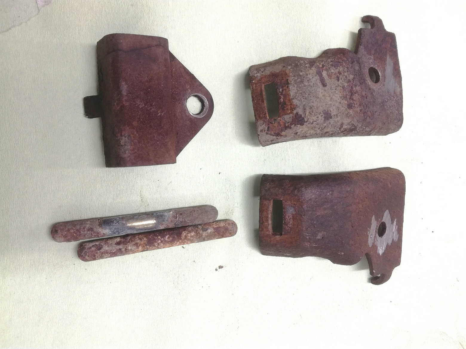 Kun maalit oli poissa niin ruoste lähti liottamalla osia pari päivää etikassa. Valurautaisista osista ruoste irtosi muutamassa tunnissa mutta peltiheloja joutui lopuksi hieman avittamaan teräsvillalla.