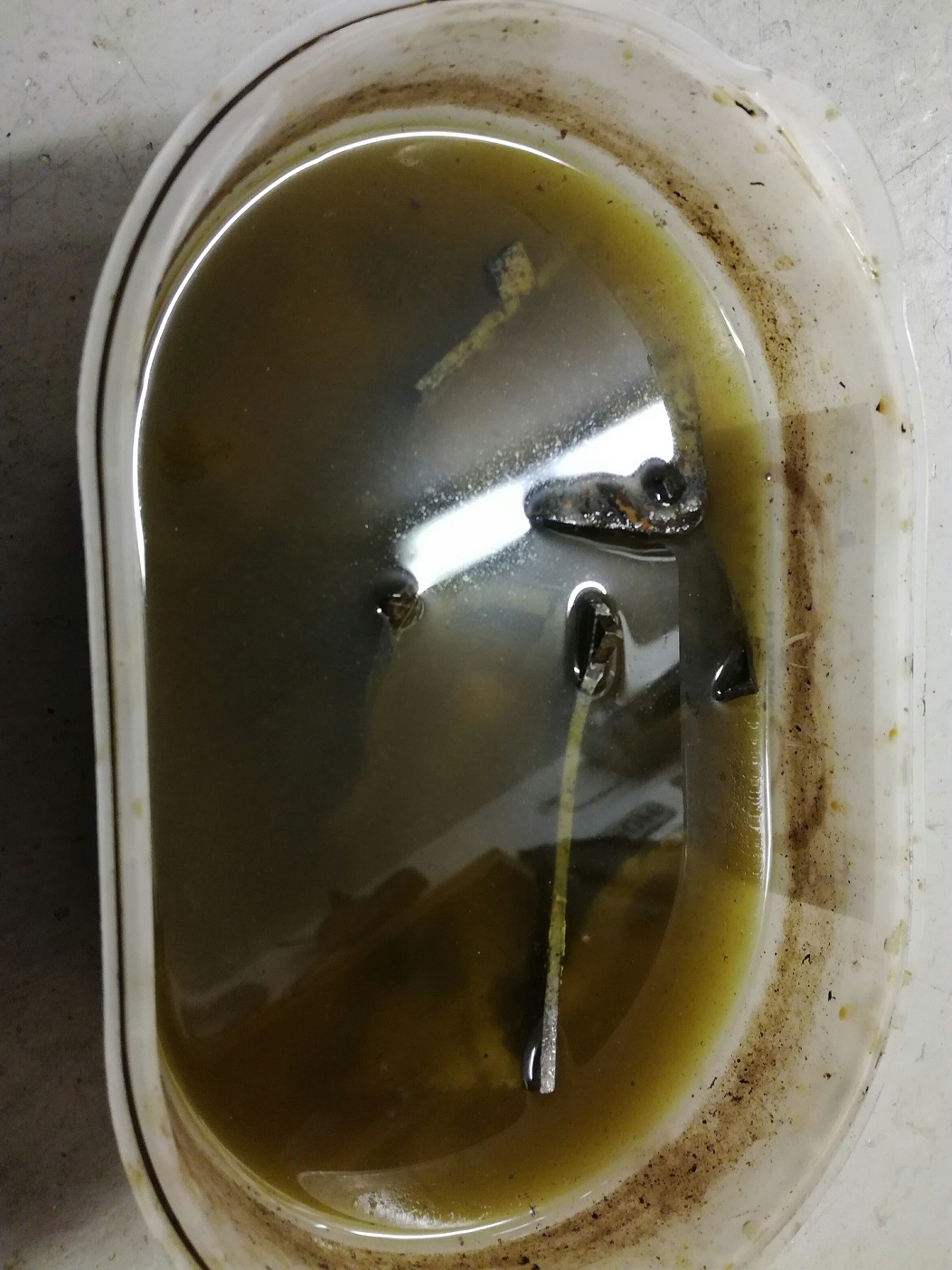 Tämä siis vinkiksi jos haluat putsata osia "perinteisin menetelmin". Siinä mielessä hyvä menetelmä että molemmat aineet voi lopuksi huuhdella viemäriin. Kodin putkimiehen, eli lipeän, kanssa kannattaa käyttää kumihanskoja ettei lähde sormista nahat samalla kertaa