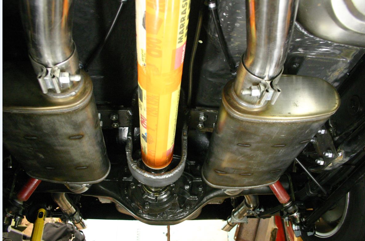 Tarkasta sitten kun saat auton ajoon, että tuon takalenkin suhteen on riittävästi liikkumavaraa, ettei kardaani ja/tai ristikot hajoa kun ne osuvat silmukkaan! Tuo taka-akseli likkuu aika paljon ainakin mutkarataa ajettaessa.