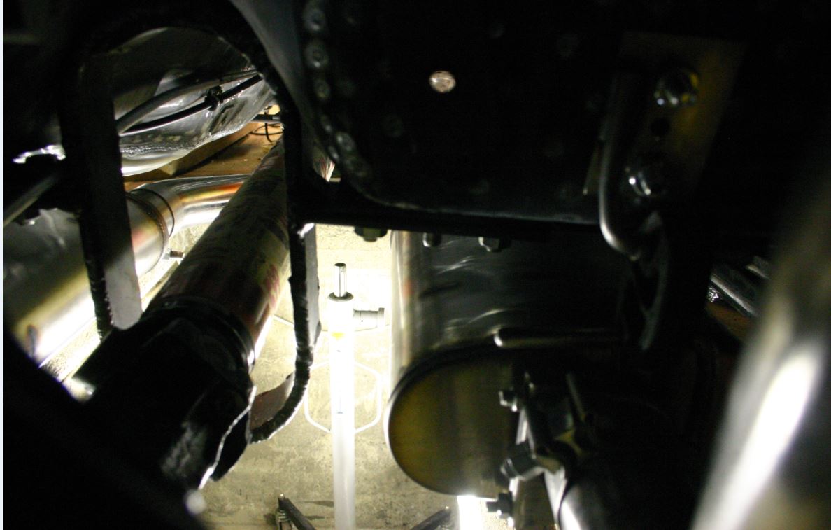 Etupään lenkki tehty roikkuvalle pakoputkelle, mutta muokattavissa tarvittaessa myös tunnelissa kulkevalle putkistolle.