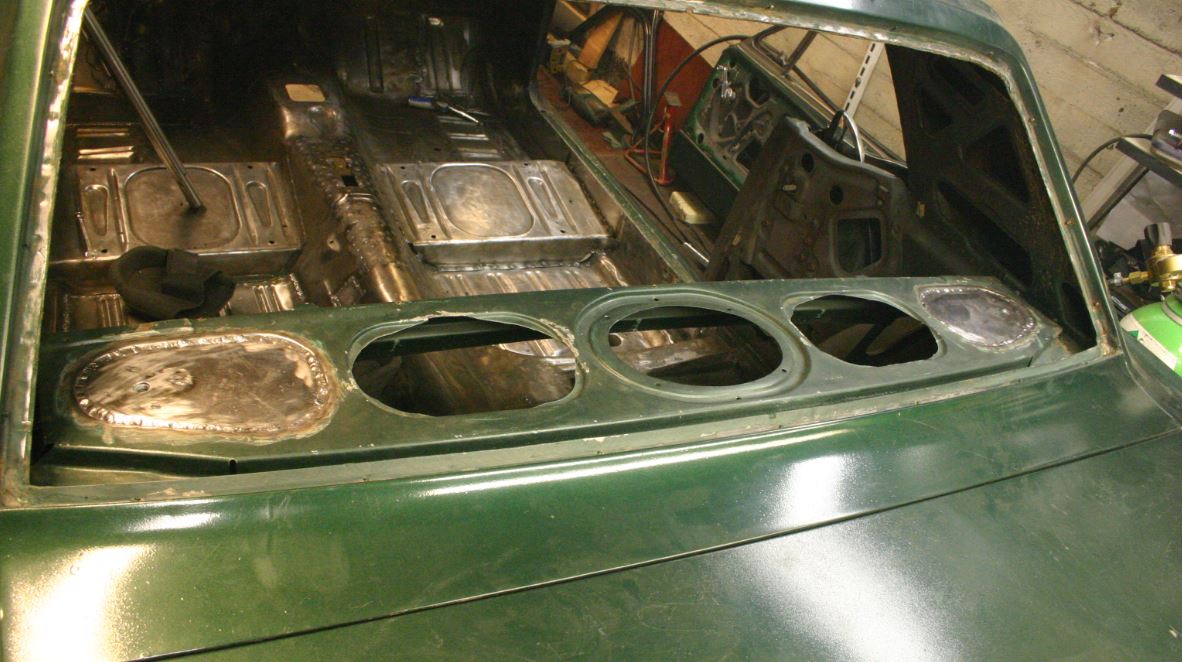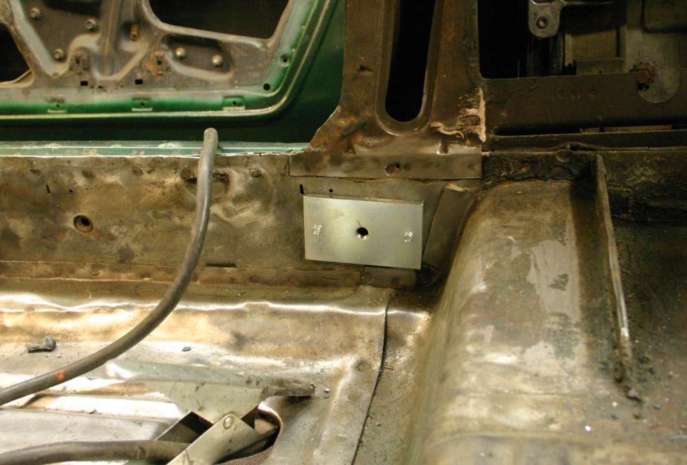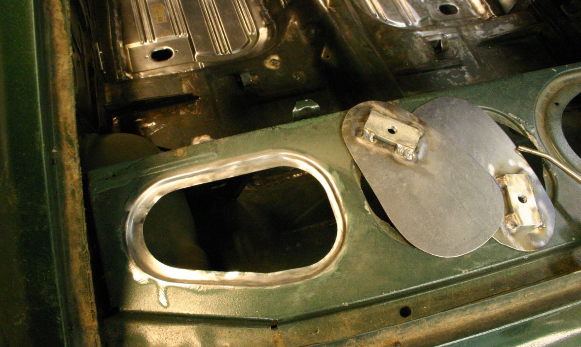 Aloitin asennuksen takavöistä. Leikkasin hattuhyllyyn vahvikkeeksi 1,5 mm:n pellistä oheiset lätkät ja niihin hitsasin kiinni 3x6 kiinnityslatat.