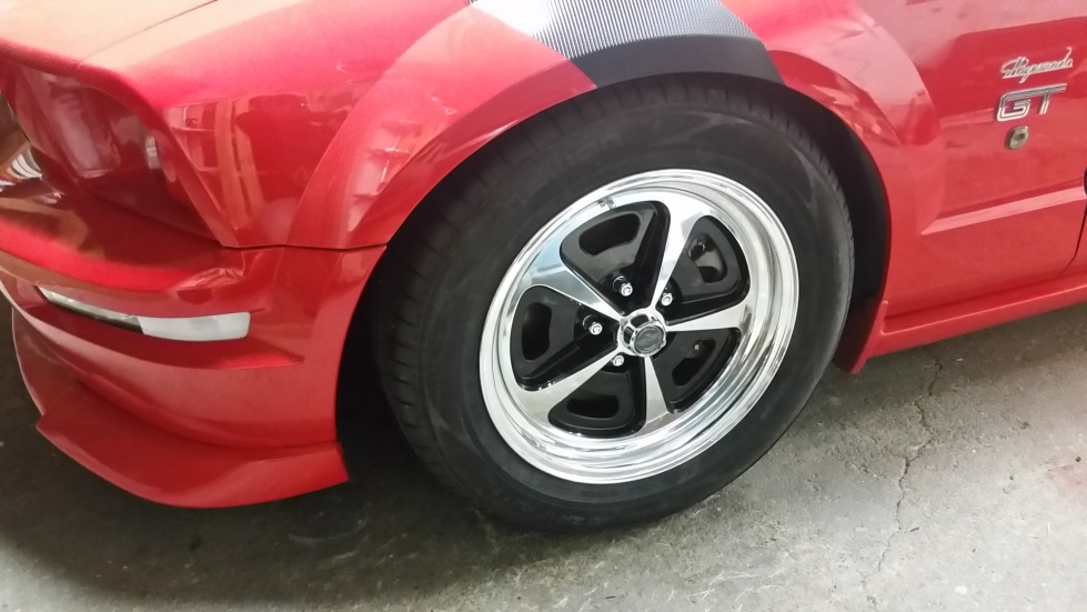 S197 kori tarvitsee runsaasti sisäänpäin levittävät vanteet. 17x8 vanne 4,75" backspacingillä levittää ulospäin aikas paljon, sopii paremmin '64-'73 tanareihin. Noi on törkeän makeet vanteet AR500/VN500:t, sitten joskus kun mun tanari jää eläkkeelle drag touhuista niin siirryn tollatiiin 17" magnumeihin.