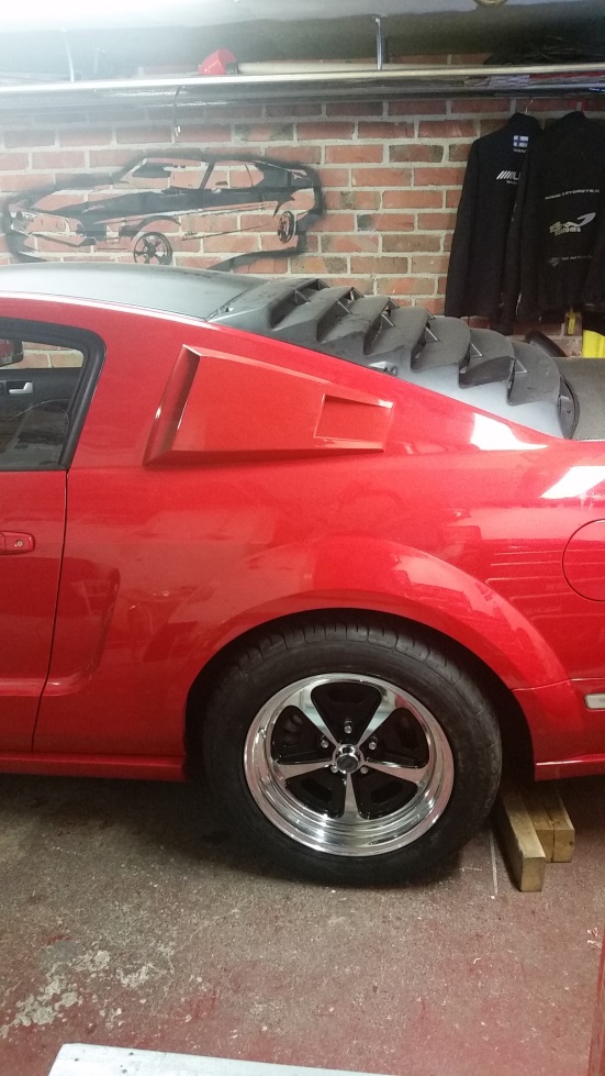 Eilen kävin paikallisen sponsorini luona kysäsisemässä näistä vanteista ja sattuikin että muutaman puhelun jälkeen todettiin homman onnistuvan. Eteen 8" ja taakse 9" tilaukseen, ja mittatilaustyönä muut speksit. Meren takana olevien speksilistoissa yllättäen löytyi tiedot sopivuuksista Mustangeihin, nyt varmistetaan vain se sopiva ET/backspace kun pienoinen madallus omasta autosta löytyy.