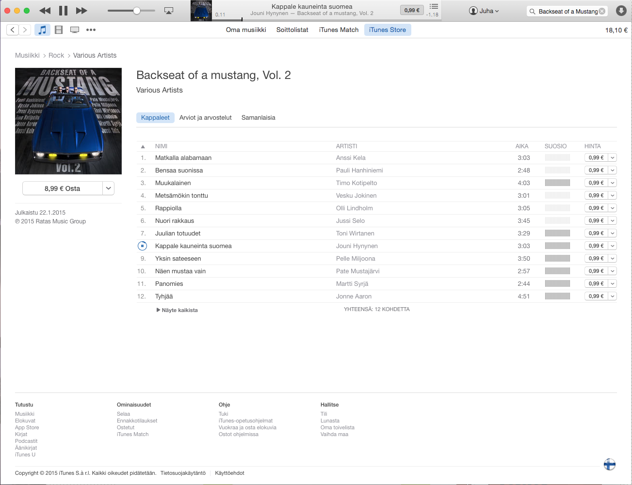iTunes:ista näyttää kanssa jo löytyvän. Pysty kuuntelemaan näytteet ja ostamaan albumin tai yksittäisiä kappaleita.