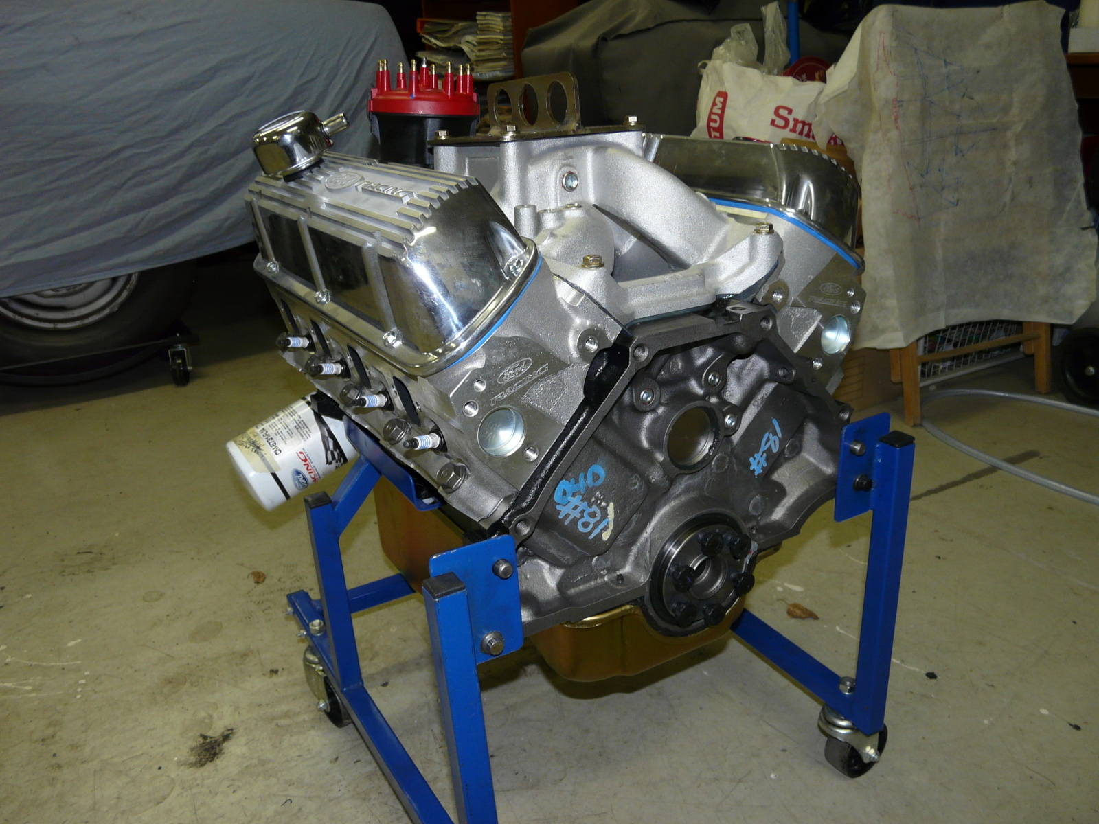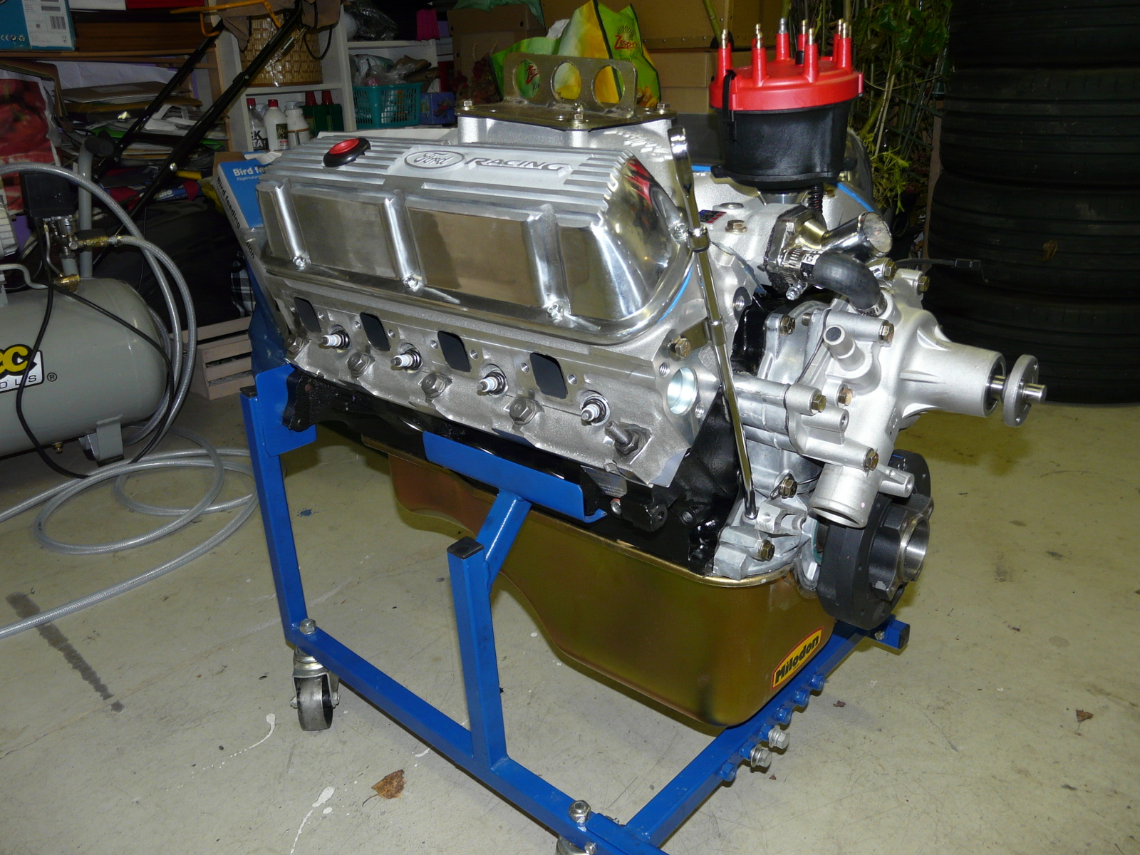 Uusi moottori siis tilattiin Summitilta. Käytettyyn 302 lohkoon Ford Racingin rakentama moottori. Se sitten saapui lentorahtina Arlandaan ja kävimme sen sieltä tullaamassa ja sitten matka jatkui moottorin kera Pär:in luo Engine Kit Racing- nimiseen firmaan, joka sijaisee Storforssissa. Olin etukäteen vähän vakoillut sitä että minkälaatuisia nämä valmiiksi kootut koneet oikein ovat, vaikkapa Ford Racingin kasaamat. Laatu kuulema saattoi vaihdella, joten otin selvää josko jostain löytyy Ford spesialisti ja tämä Pär on tunnettu alalla ja kuulema osaa hommansa. No kone Pärille ja sovittiin, että hän käy sen kokonaan läpi, laakeroinnit, momentit ja käyttää sitten koepenkissä. Halpaa se ei ollut, mutta on parempi, että kone ajetaan penkissä ennekuin se tiputetaan paikalleen. Jostain syystä GM spesialisteja tuntuu löytyvän helpommin, mutta Fordia tuntevia on harvemmassa.