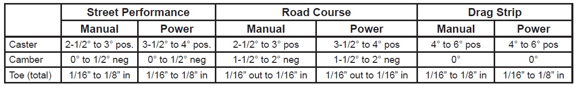 Ohjauskulmat voisi olla jotenkin noin kun tuossa taulukossa ja bump steer säätö menee jotenkin noin:
