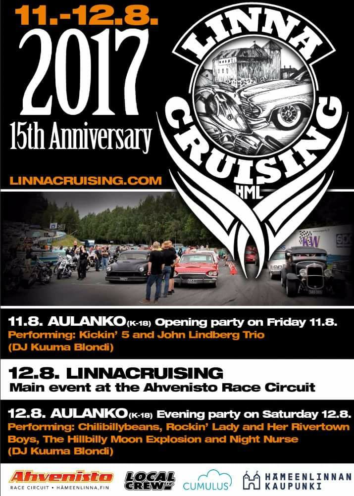 Samaan aikaan Hämeenlinnassa, Verkatehtaalla järjestetään myös Elomessut, joten cruising lenkillä riittää varmasti katsojia. Ja jos Linna Cruising esiintyjät eivät kiinnosta, niin Jäähallilla järjestetään samaan aikaan Elofestit. Pe Elofesti etkot (vapaa pääsy) la Elofest 2017 - Ysäribileet